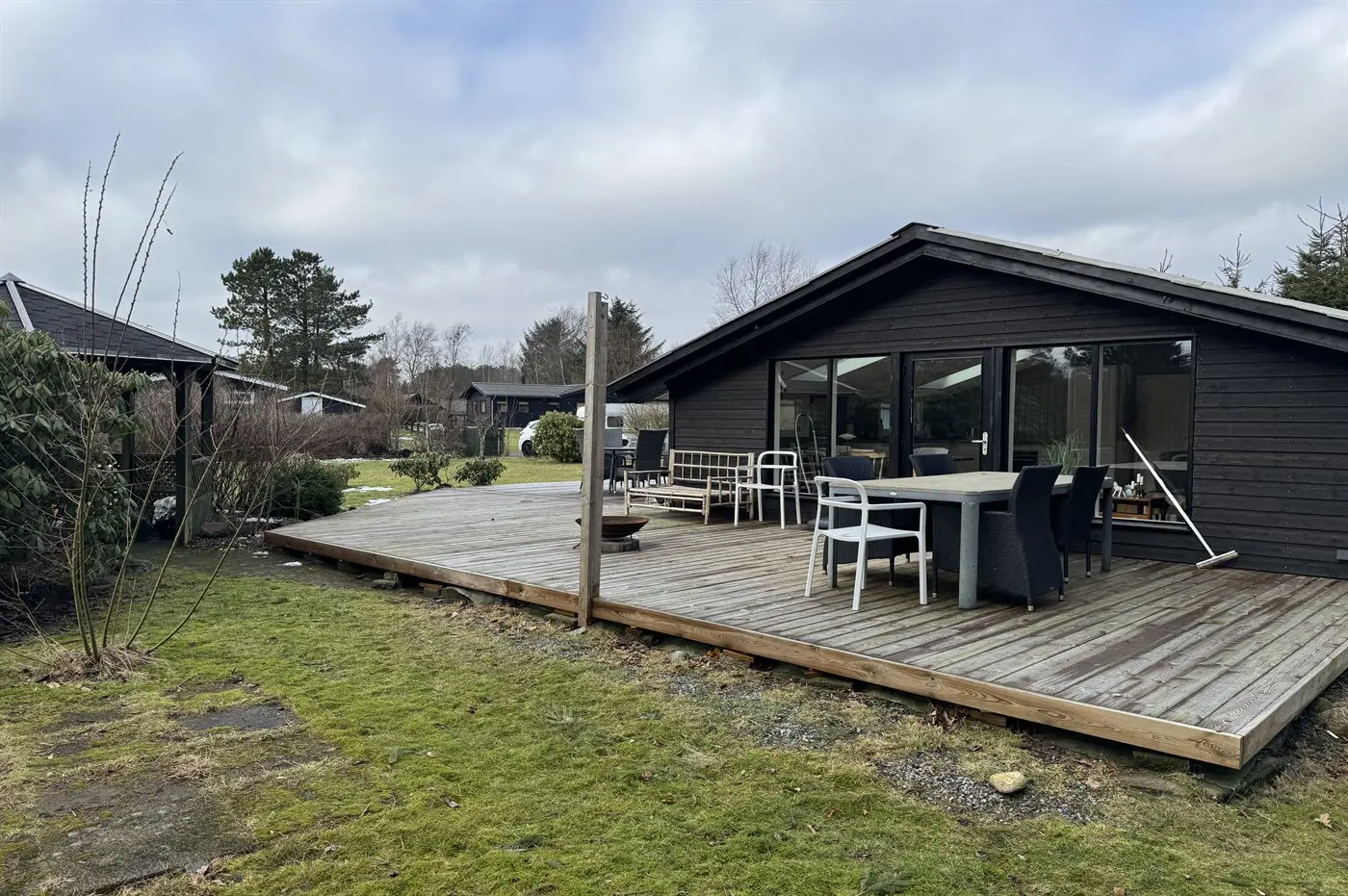 Die Ferienunterkunft liegt auf einem 1251 m² großen Gartengrundstück. Das Grundstück ist eingezäunt. Die Entfernung zum Meer beträgt 1320 m. Die Entfernung zum Fjord beträgt 5960 m. Die nächste Einkaufsmöglichkeit liegt 1650 m entfernt. In einem Abstand von 5350 m gibt es einen Golfplatz. Es steht ein offenes Terrassenareal zur Verfügung.Lagerfeuerstelle. Es steht ein Grill zur Verfügung. Parkplatz auf dem Grundstück.