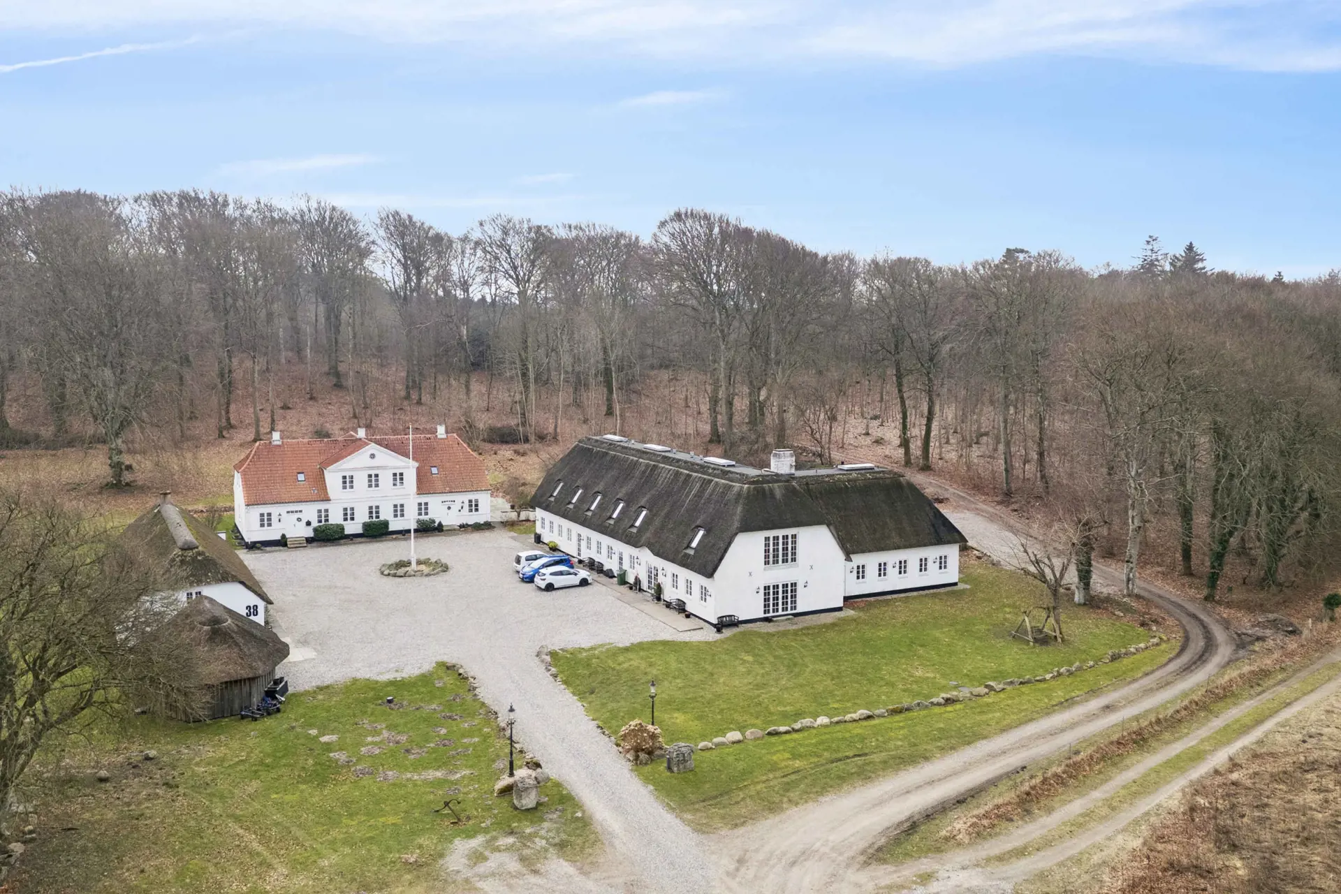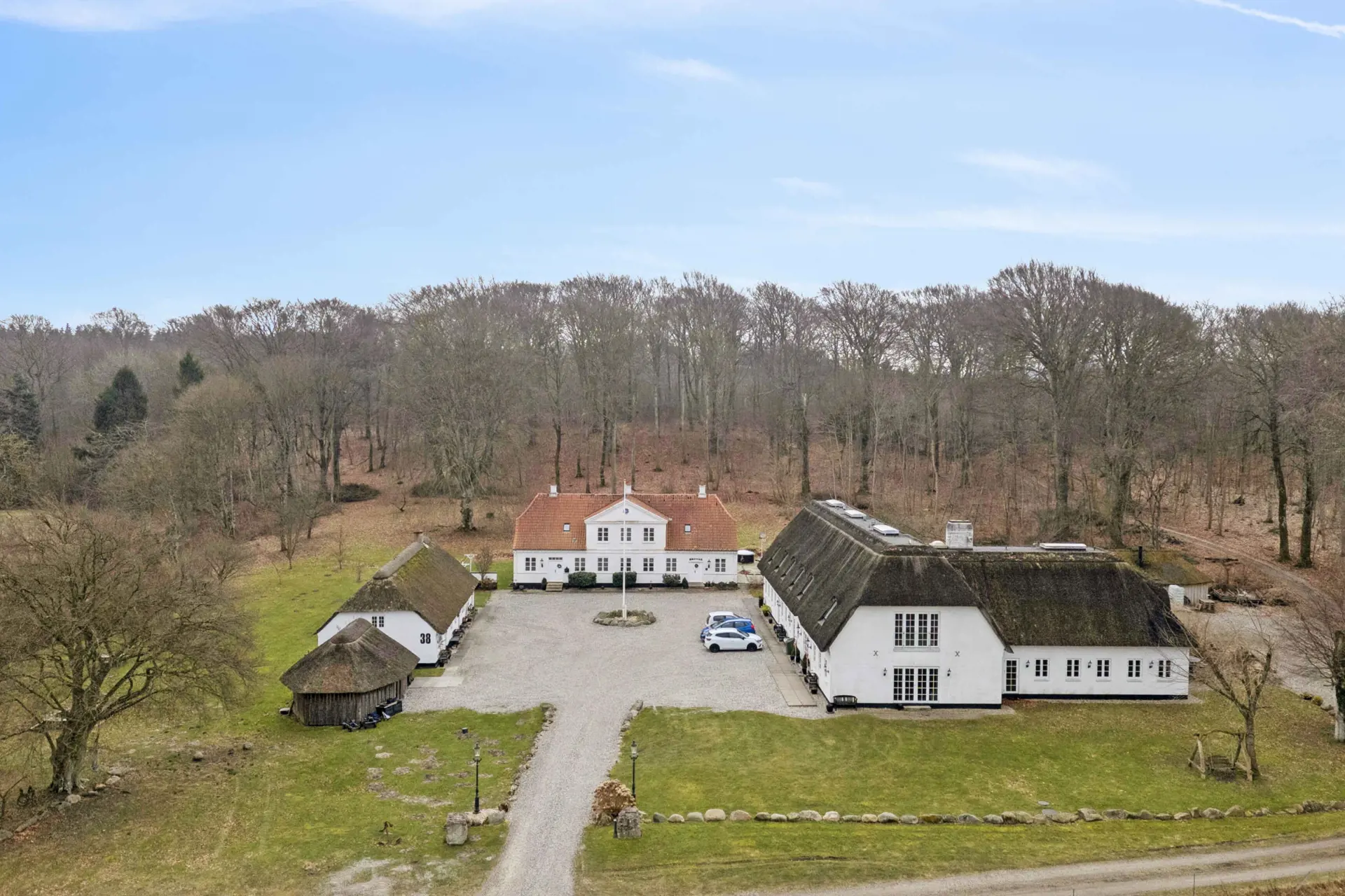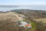 Das Haus liegt mitten in der Natur, umgeben von Wald auf drei Seiten und mit Blick auf den Mariager Fjord auf der vierten Seite.