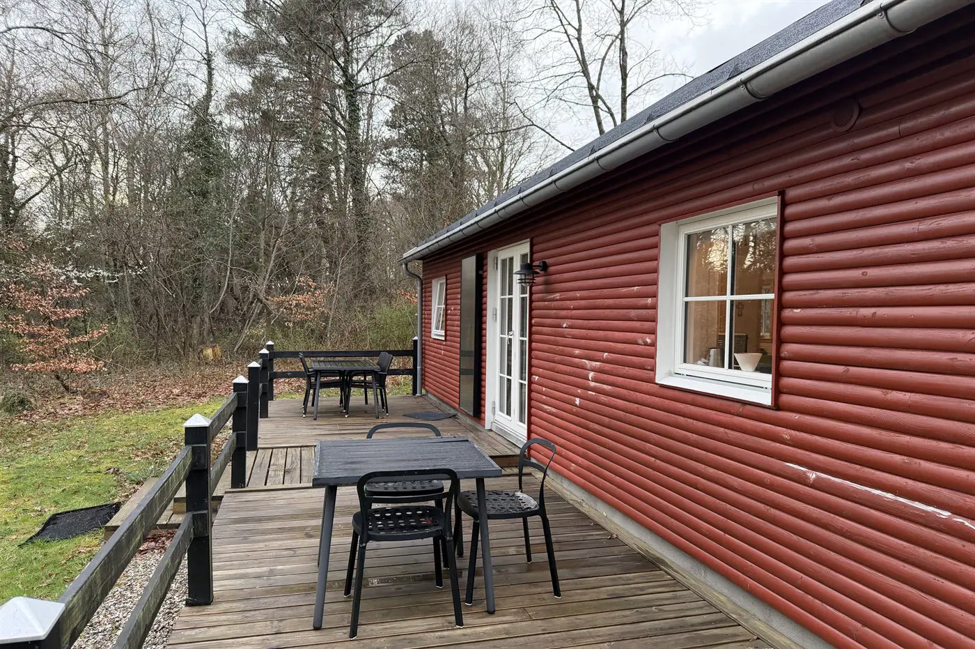 Genieße die Ruhe in diesem schönen kleinen Ferienhaus, idyllisch mitten im Wald gelegen. Hier kannst du auf der großen Terrasse entspannen und die Kinder frei spielen und Ball in der grünen Umgebung spielen lassen.
