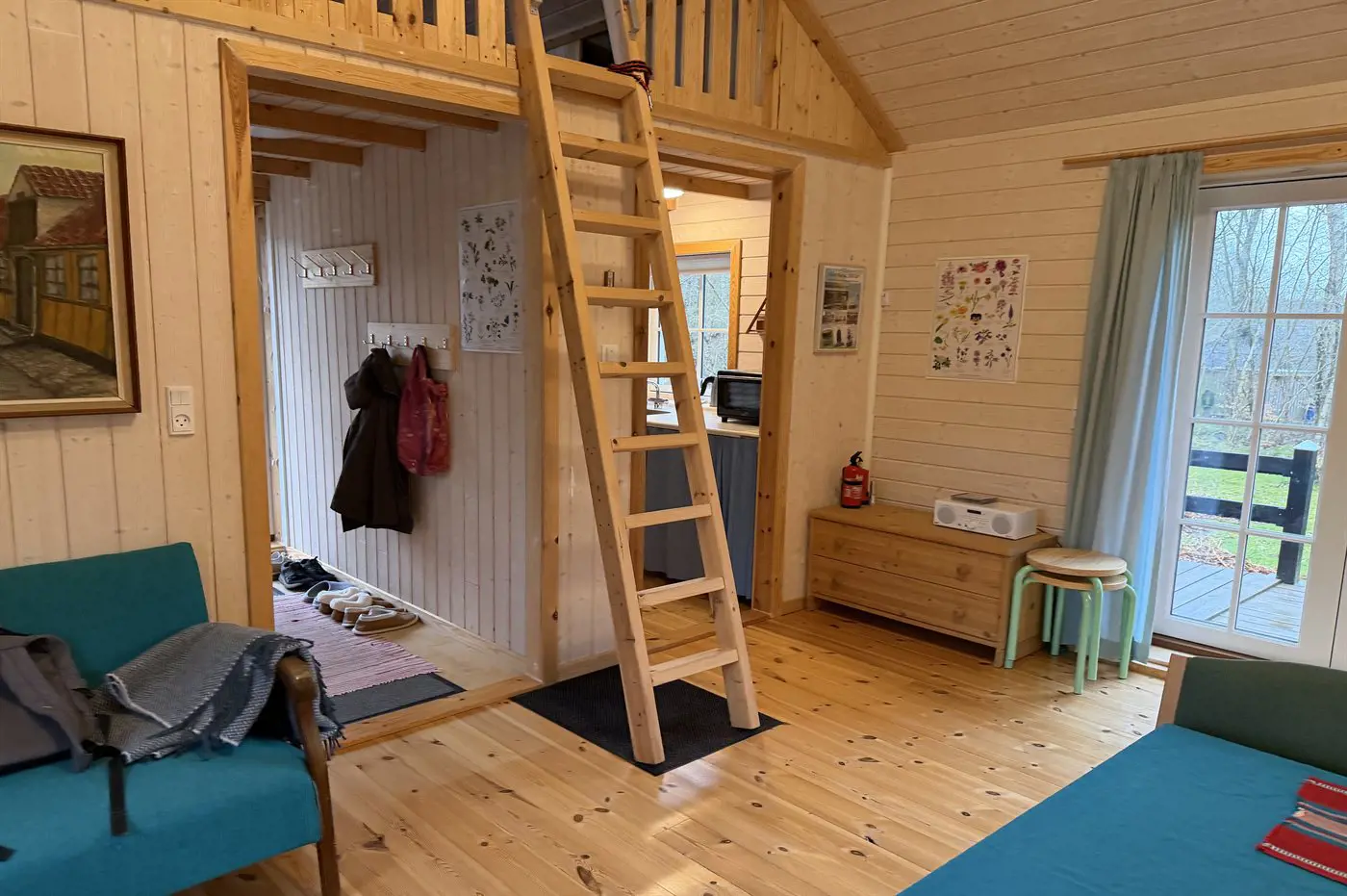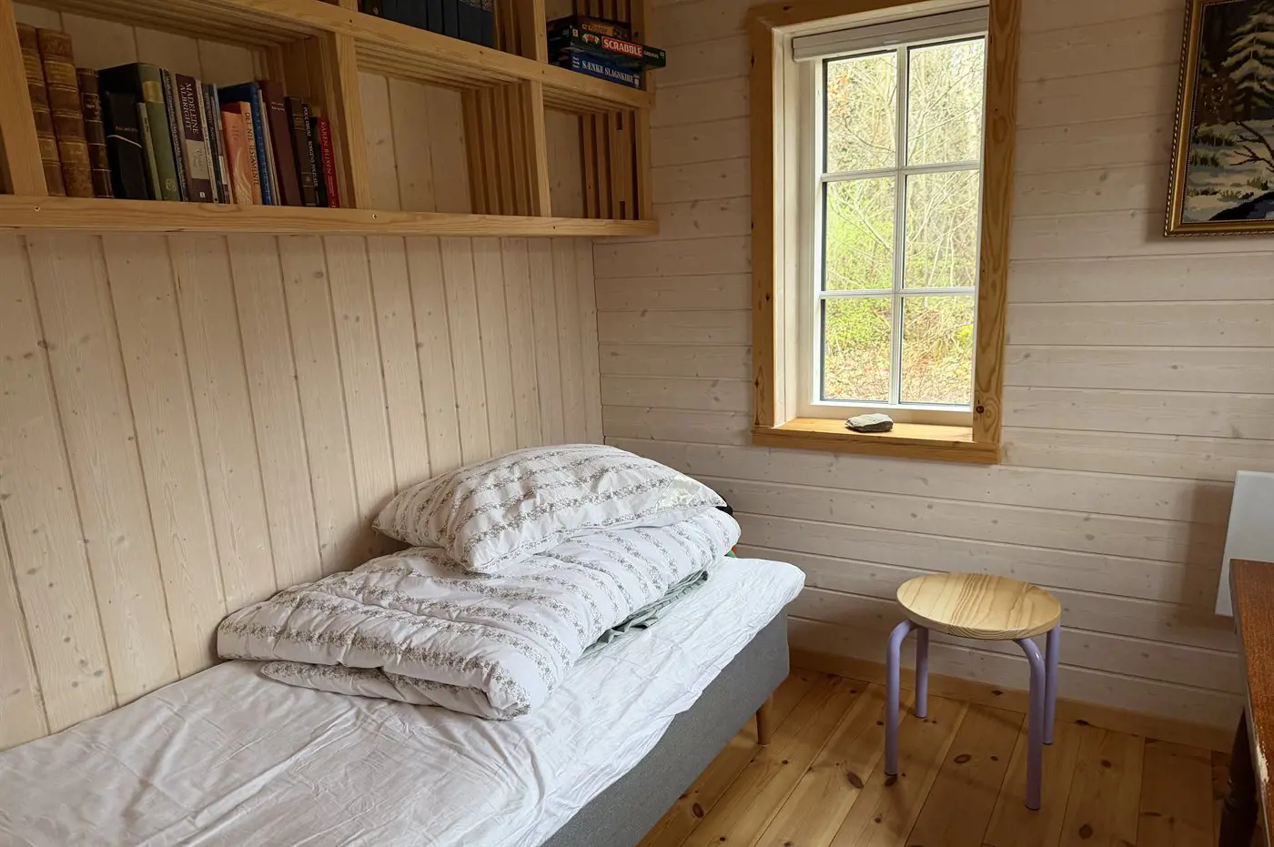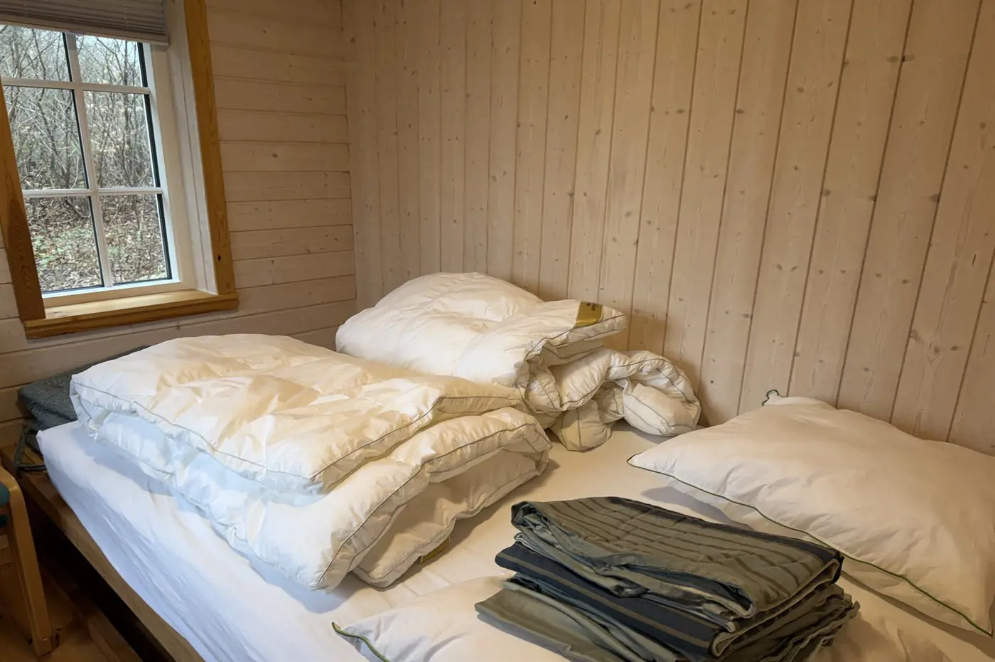 Die Schlafplätze verteilen sich auf 2 Schlafräume. 2 Schlafplätze in einem Doppelbett. 2 Schlafplätze in Einzelbetten.