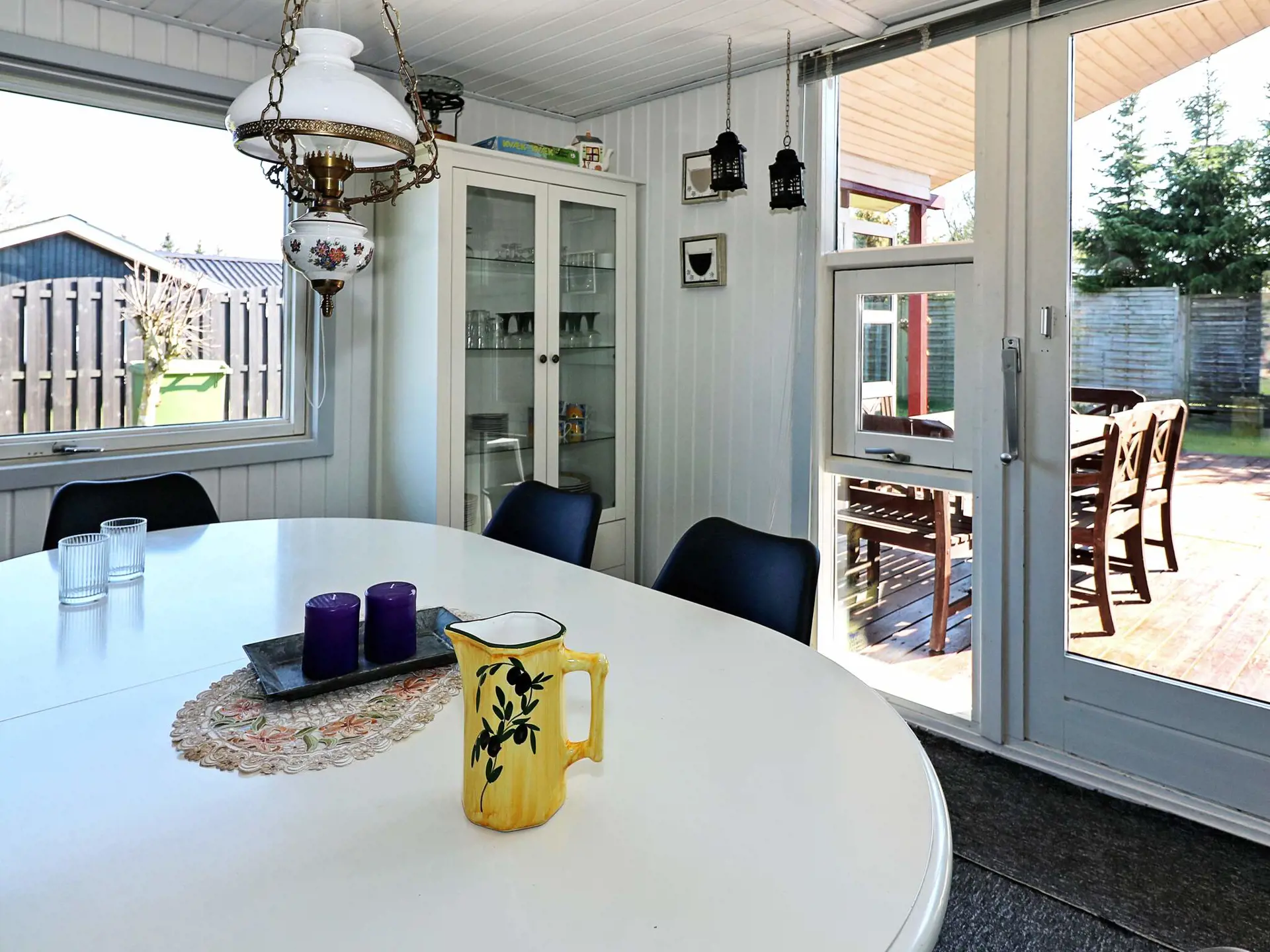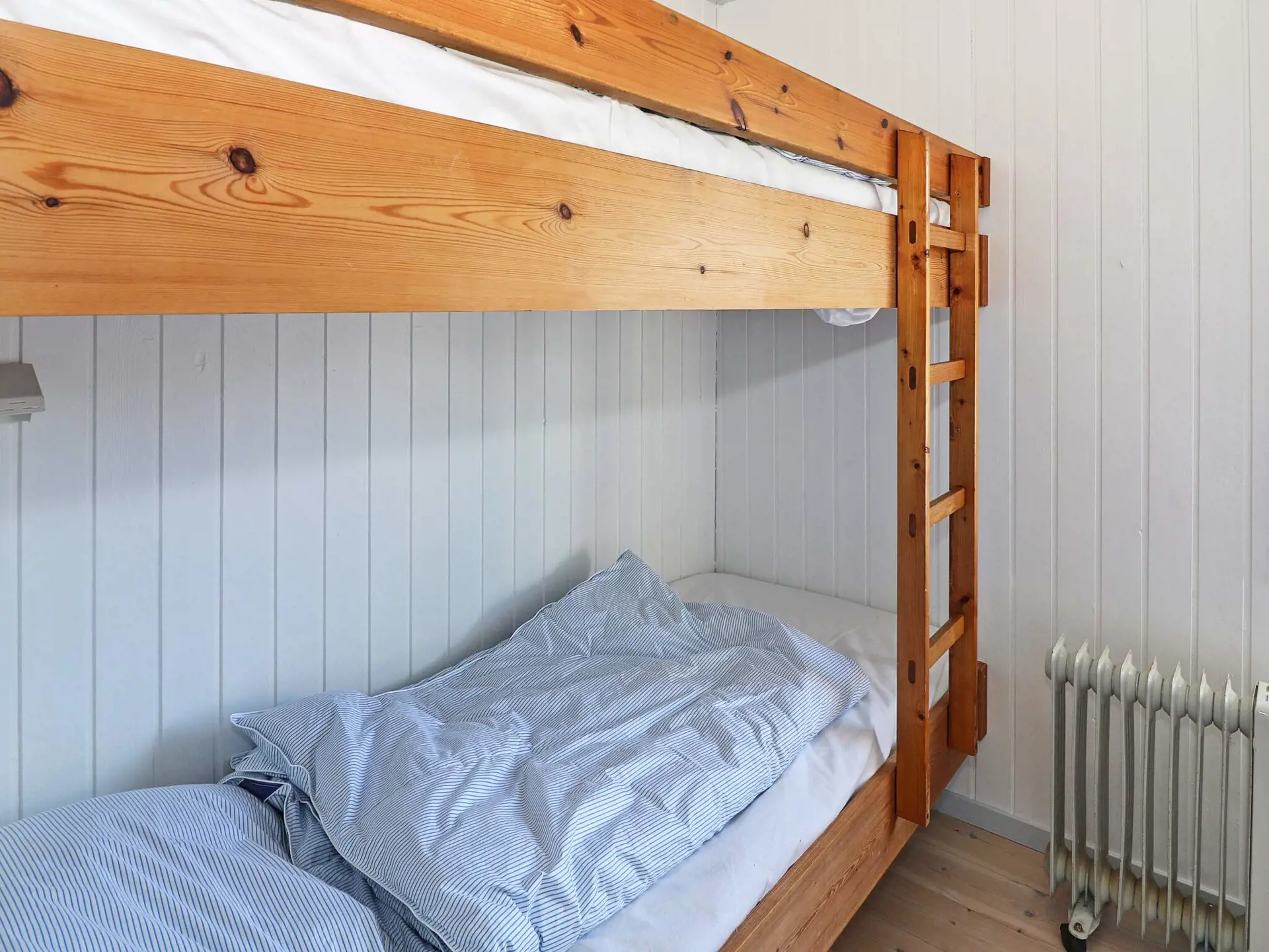 Ferienhaus in einem ruhigen Gebiet, von dem das Meer zu Fuß erreichbar ist. Sie können das Wasser vom Grundstück aus sehen. Im Innern des Hauses erwartet Sie ein helles, geräumiges Wohnzimmer, das offen mit Küche und Essplatz verbunden ist. Außerdem gibt es ein Schlafzimmer mit Doppelbett und eines mit 3/4 Bett und zwei Kojenbetten. Bad mit Badewanne und Dusche. Der Garten ist ungestört und verfügt über teilweise überdachte Terrassenfläche mit Gartenmöbeln sowie einen Sandkasten für Kinder.