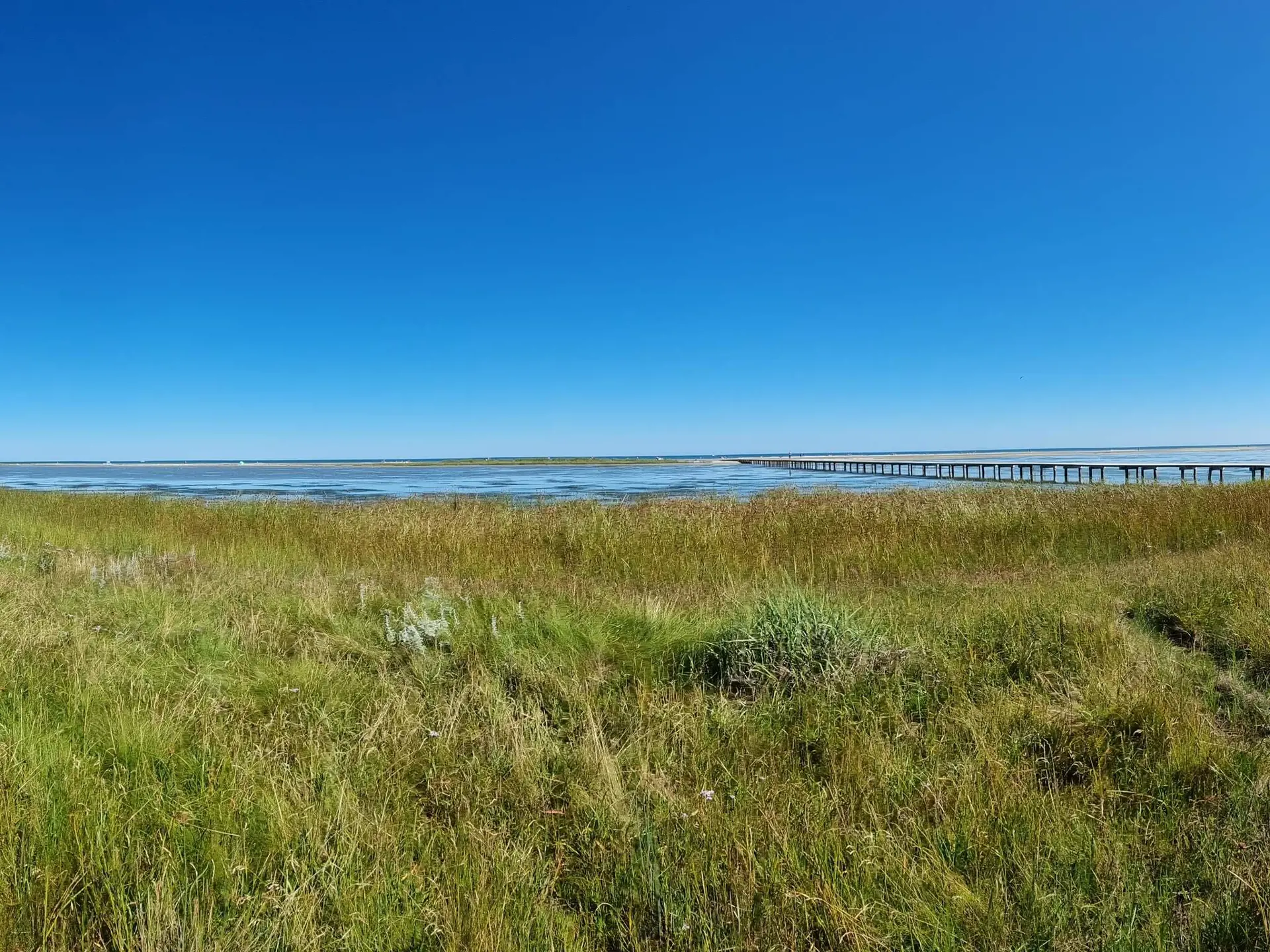 großes Schlafzimmer mit Doppelbett und Aussicht zum Wasser sowie ein
