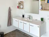 Dieses einladende Ferienhaus in der Nähe von Øster Hurup vereint maritimen Charme, modernen Komfort und die Schönheit der Natur perfekt. Die durchdachte Gestaltung mit stilvollen Möbeln und großen Fenstern sorgt für ein helles und einladendes Ambiente, in dem Sie vom ersten Moment an entspannen können. Der offene Wohnbereich geht nahtlos in den Ess- und Wohnbereich über und bietet so einen gemütlichen Ort für gemeinsame Mahlzeiten, Zeit mit der Familie oder einfach zum gemütlichen Lesen.