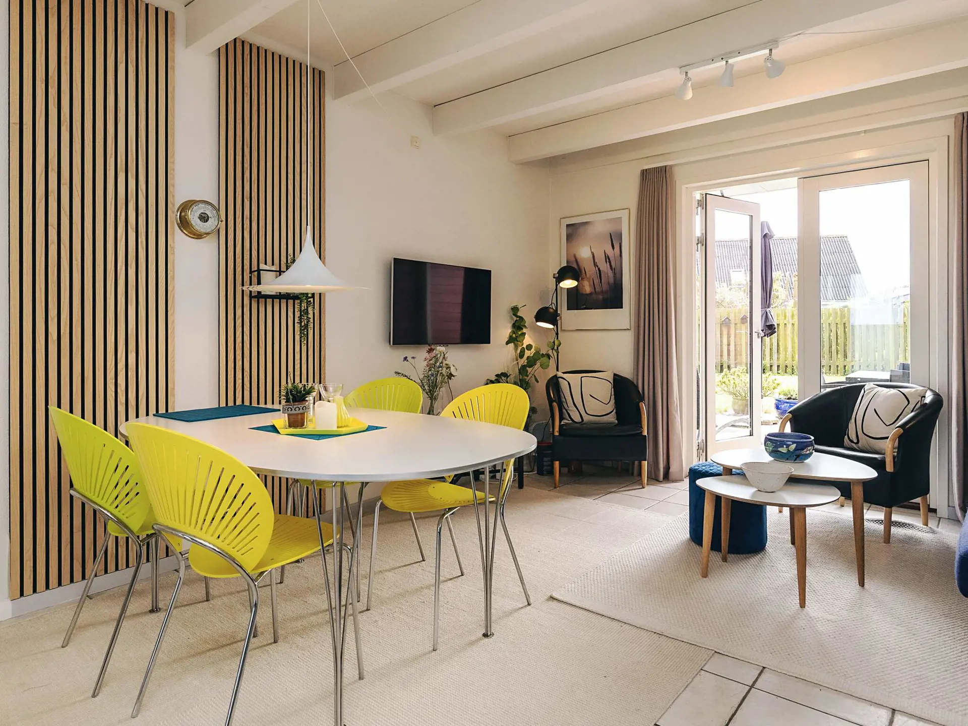 Das Reihenhaus verfügt über ein geräumiges Wohn- und Esszimmer mit offener Küche, ideal für geselliges Beisammensein und Familienzeit. Große Glasfronten durchfluten den zentralen Wohnbereich mit Tageslicht und schaffen eine helle und einladende Atmosphäre. Es gibt zwei Schlafzimmer, die jeweils mit einem Doppelbett ausgestattet sind. Zur Unterhaltung stehen Satellitenfernsehen und Chromecast-Zugang für das Streamen Ihrer Lieblingsinhalte zur Verfügung.