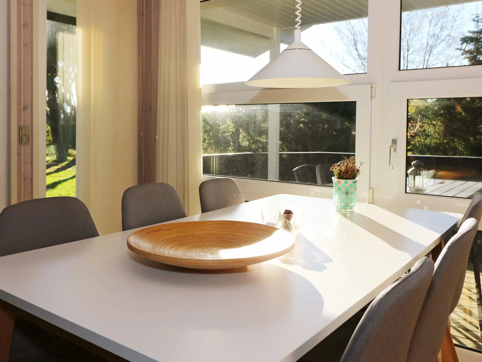 Ferienhaus mit Whirlpool, auf einem großen Grundstück in einem ruhigen Feriengebiet und nur einen kurzen Spaziergang vom Meer entfernt gelegen. Das Wohnzimmer ist offen mit der Küche verbunden und hat einen Ausgang zur teilweise überdachten Terrasse. Weiterhin gibt es zwei Schlafzimmer und einen Alkoven im Wohnzimmer. Das Bad verfügt über Whirlpool und Dusche. Der Fernseher empfängt deutsche und skandinavische Sender. Auf dem ungestörten Naturgrundstück stehen Schaukel und Rutsche für Kinder bereit. Angler finden zahlreiche Angelstellen in der Umgebung.