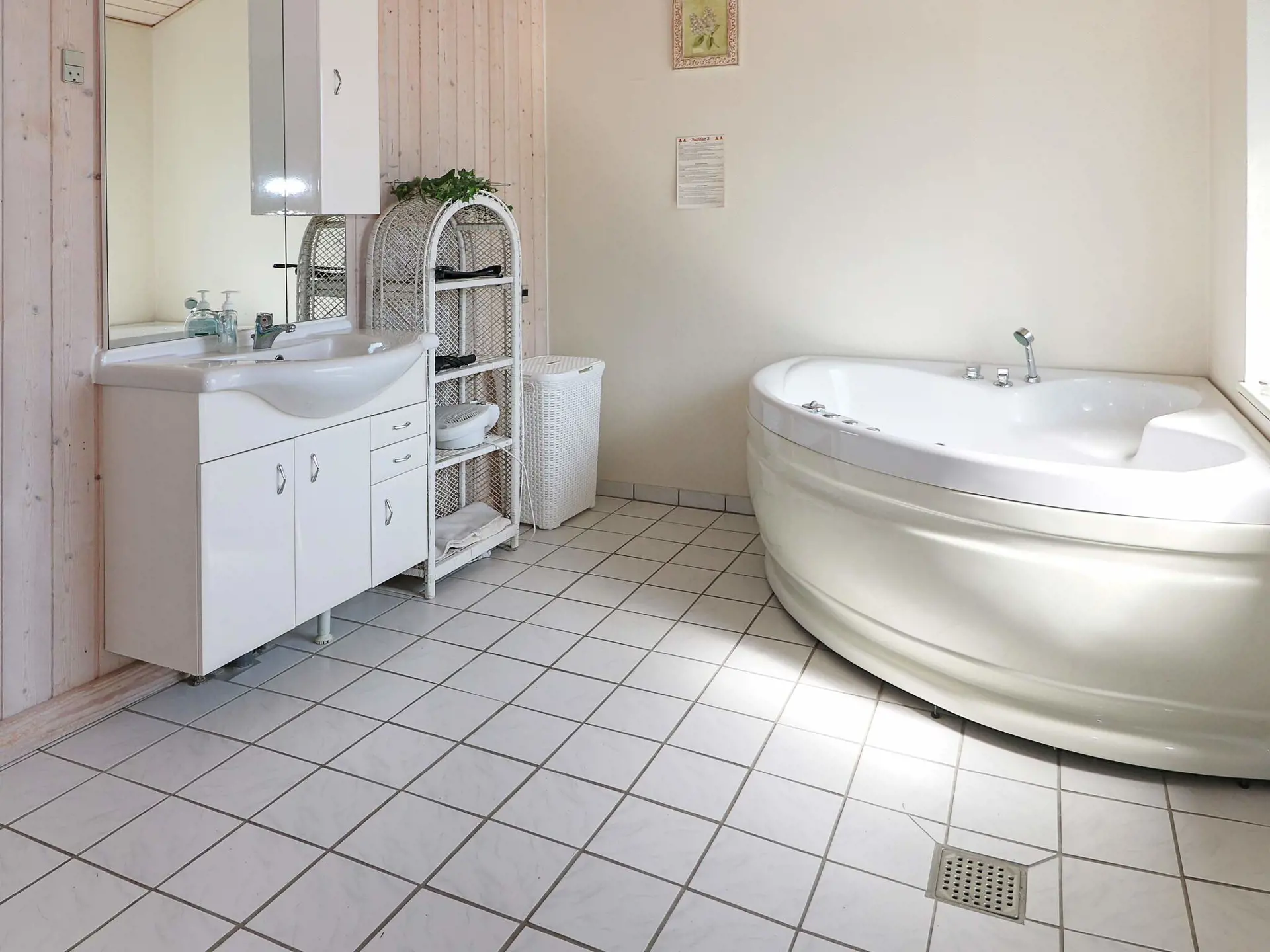 Ferienhaus mit Whirlpool, nur wenige Gehminuten vom Strand und der Stadt Øster Hurup entfernt. Großes und helles Wohnzimmer, das in offener Verbindung mit der Küche und dem Essbereich steht und von dem aus man Zugang zu einem großen Wintergarten und einer Terrasse hat. Vier Zimmer mit Doppelbetten und ein Zimmer mit Etagenbetten, dazu ein Loft mit zwei Zusatzbetten. Es gibt zwei Badezimmer mit Dusche sowie eine Whirlwanne. Außen große Terrasse und mehrere gemütliche Ecken zum Entspannen. Das Ferienhaus liegt auf einem großen Grundstück in einer ruhigen Gegend. Im Sommer gibt es einen großen Außen-Whirlpool für 8 Personen; nur verfügbar Kalenderwoche 27-33.