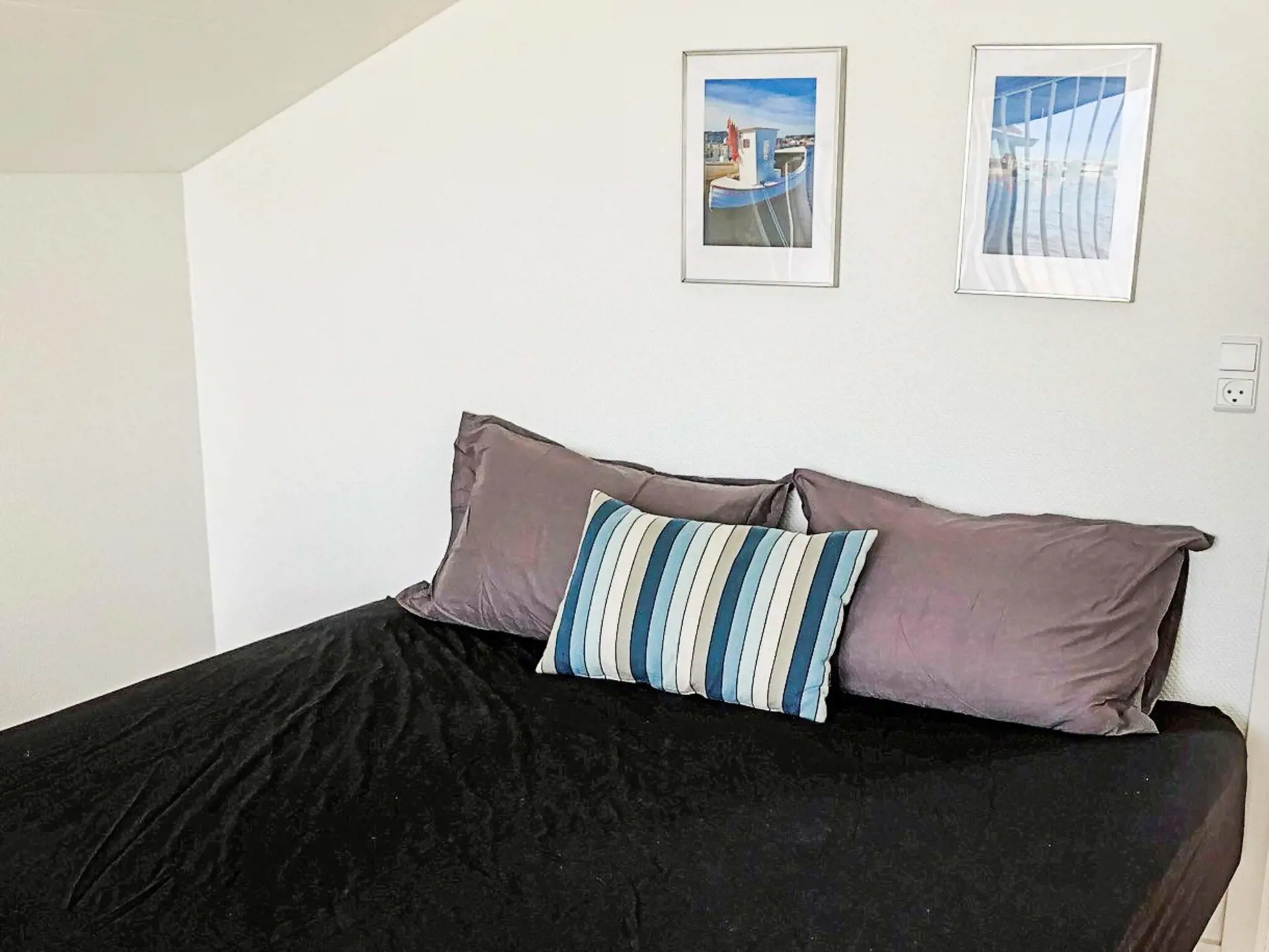 Innen typisch skandinavischer, heller Einrichtungsstil. Geräumiger und zeitgemäß ausgestatteter Küchen-/Wohnbereich mit Zugang zur Terrasse davor mit geschütztem Sitzplatz. Im Bad unten stehen u.a. Dusche und Whirlwanne bereit. Obere Etage mit allen Schlafzimmern, zwei davon in Richtung Bootshafen ausgerichtet. Zweites Bad oben. Eines der Betten ist aufklappbar und in 3/4 Breite. Ein kinderfreundliches Strandufer sowie der Ort Øster Hurup liegen unweit.