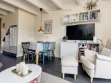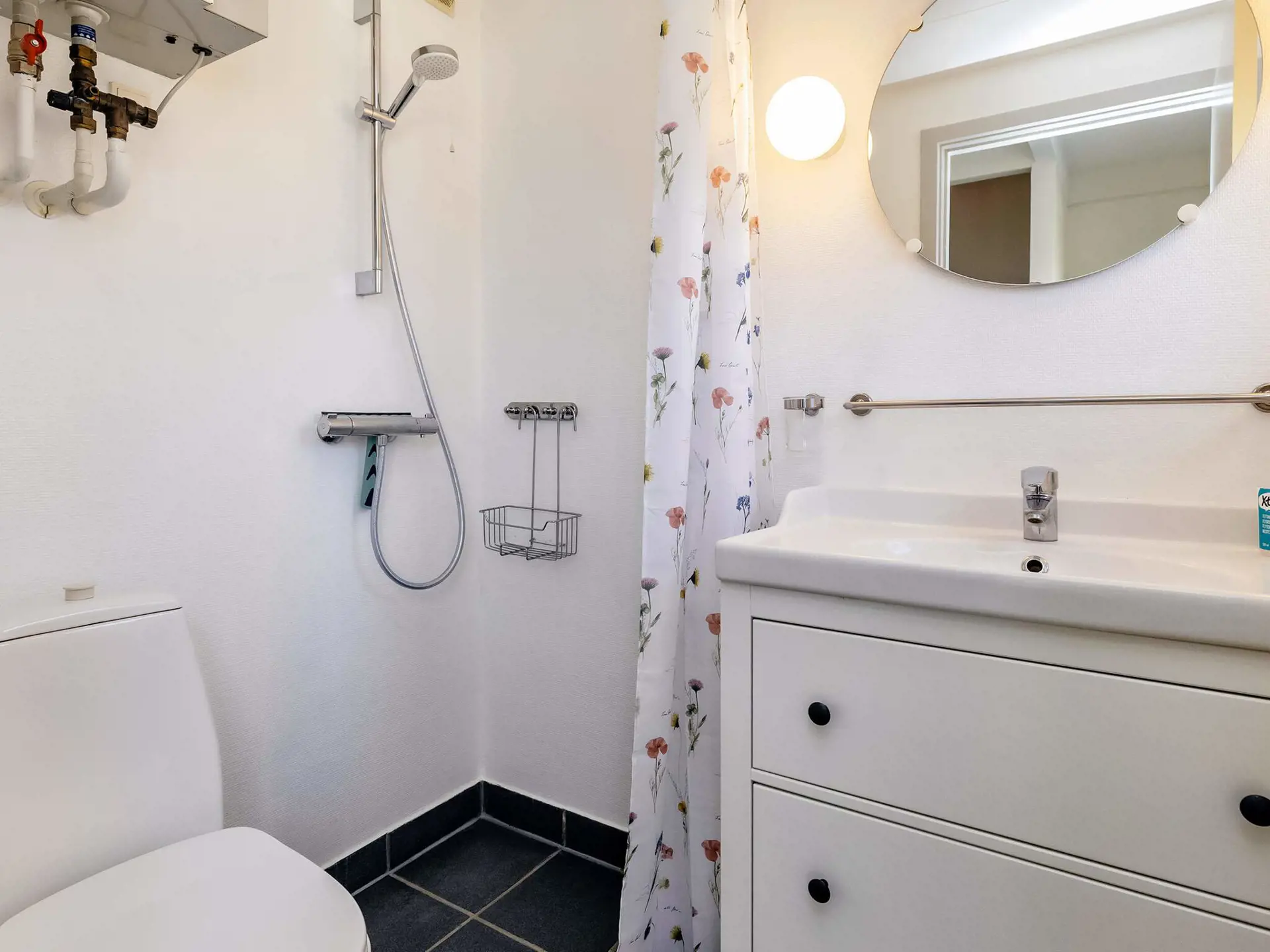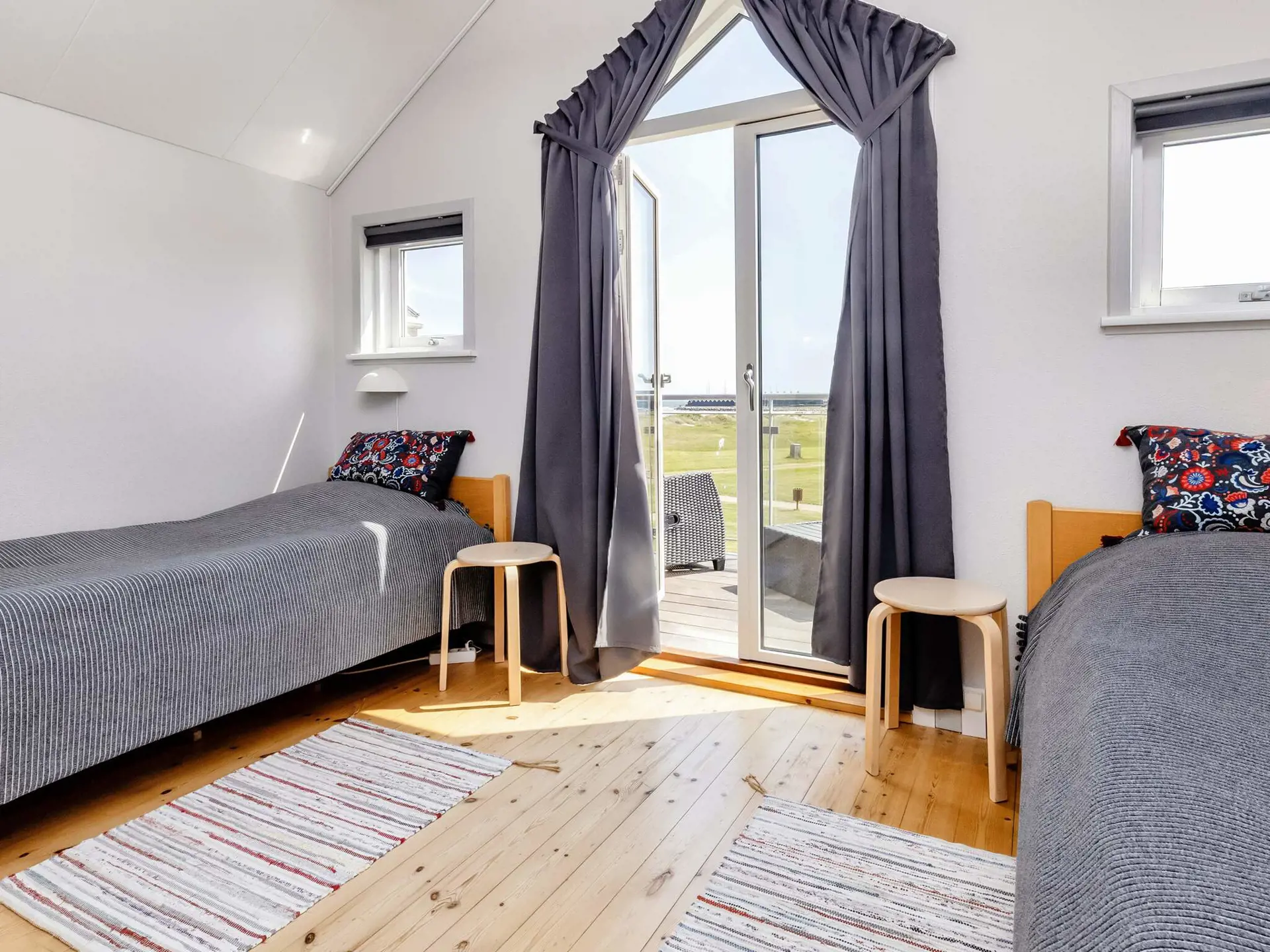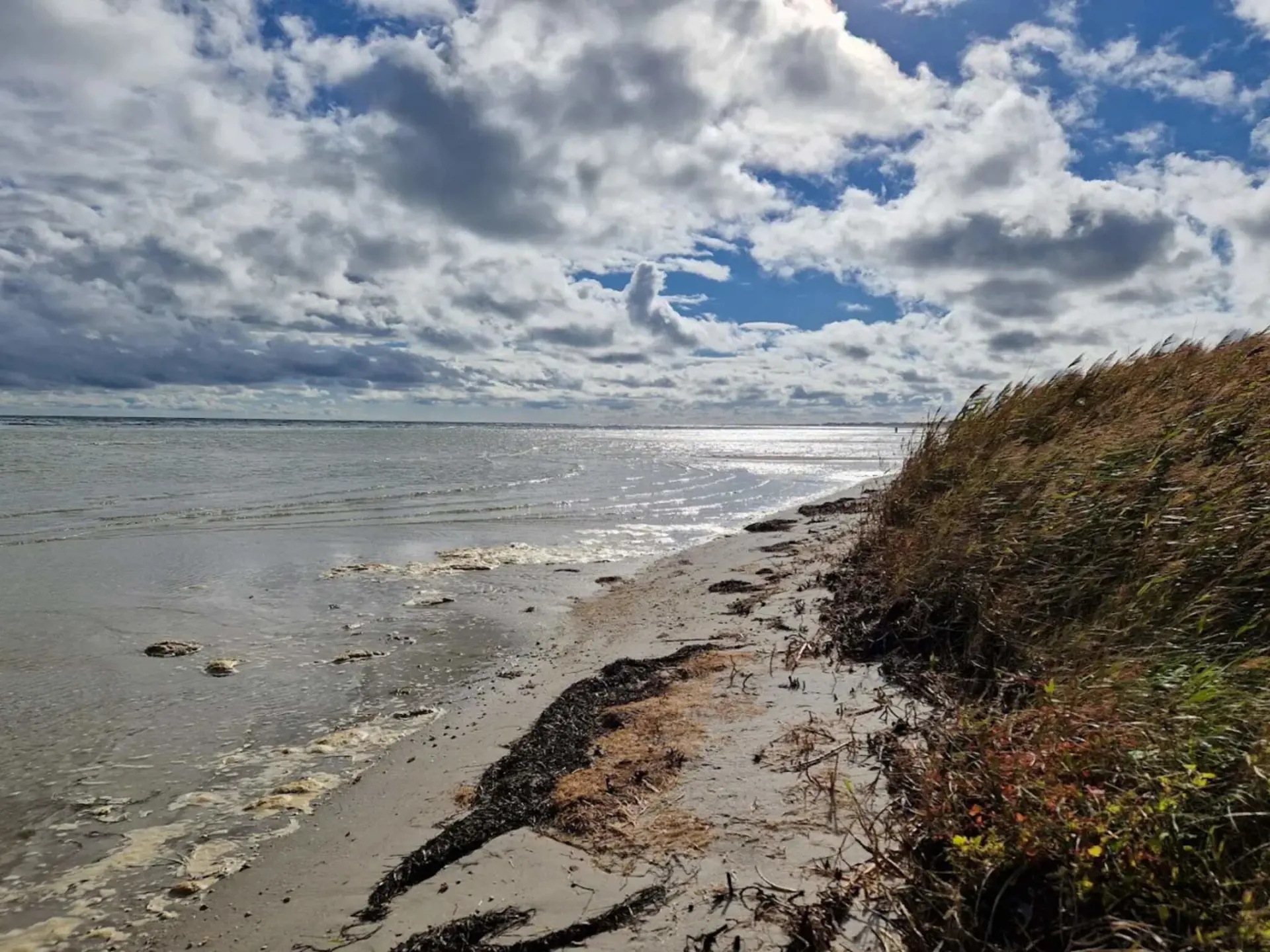 Die Ferienwohnung ist mit einer Küche, einem Ess- und Wohnzimmer sowie einem Badezimmer im Erdgeschoss mit Zugang zu einer Terrasse mit Meerblick ausgestattet. Oben im 1. Stock gibt es ein Schlafzimmer mit Doppelbett und ein zweites mit zwei Einzelbetten sowie Zugang zu einem Balkon mit Meerblick. Außerdem auf dem Flur ein Schlafalkoven mit Doppelbett in 3/4 Breite. Darüber hinaus große Gemeinschaftsflächen vor Ort, die zum Spielen und Ballspielen einladen.