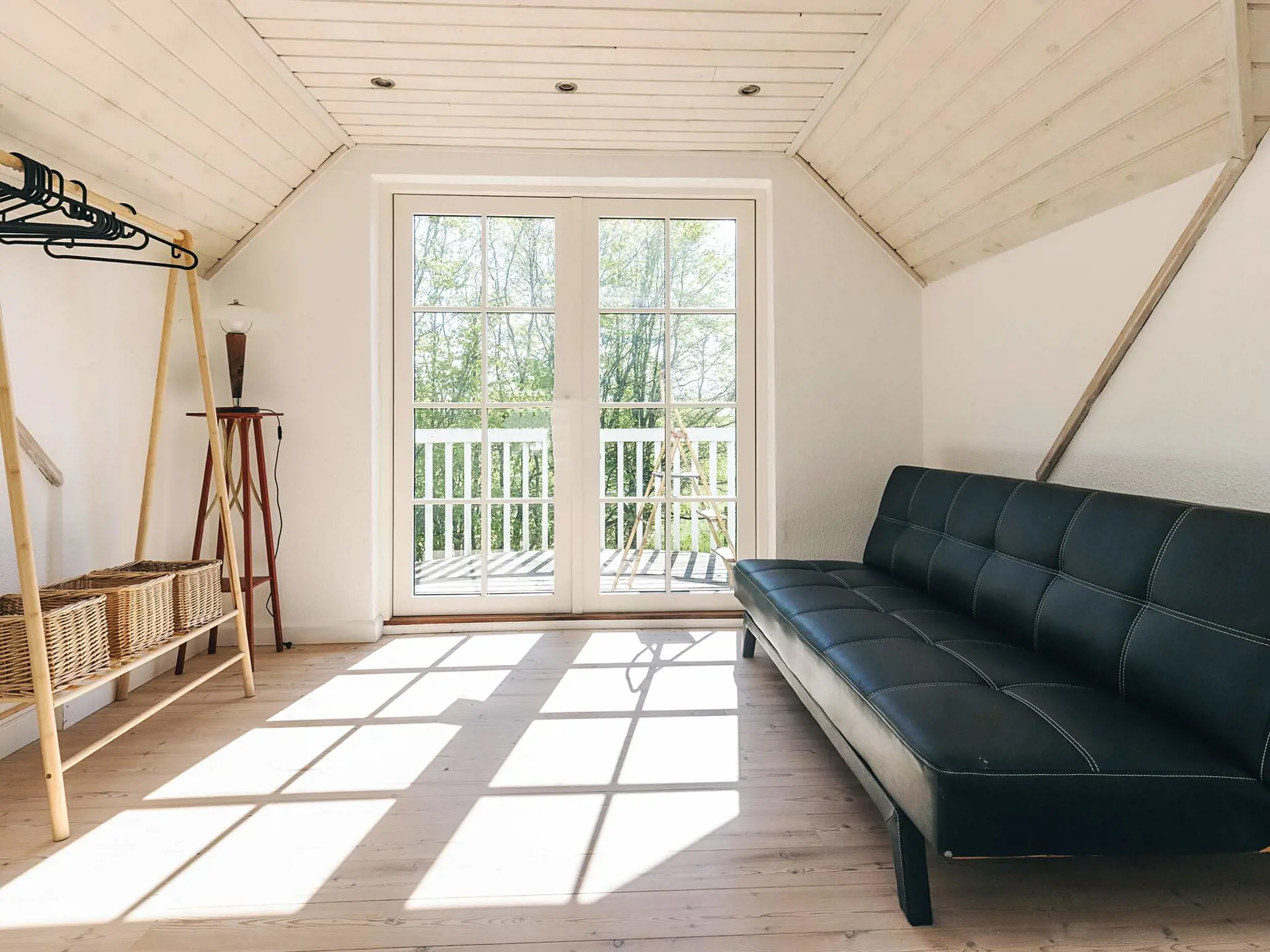 Im ersten Stock befindet sich ein heller Flur mit einem Schlafsofa mit Doppelbett und Zugang zu einem Balkon. Zwei gute Zimmer mit Doppelbetten und Blick auf das Kattegat. Im Keller gibt es eine Waschmaschine und einen Trockner.