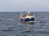 Innen helle Küche mit Blick aufs Wasser. Die Küche ist offen mit dem Esszimmer und dem Wohnzimmer verbunden und verfügt über einen Holzofen und eine Wärmepumpe. Vom Wohnzimmer aus gelangt man auf die große Holzterrasse und den Garten mit Schaukel und Spielgeräten. 1 Doppelzimmer mit 2 Einzelbetten bzw. Doppelbett, 1 Zimmer mit 2 Einzelbetten bzw. Doppelbett und 2 Kojen im Etagenbett. Badezimmer mit Dusche und WC.