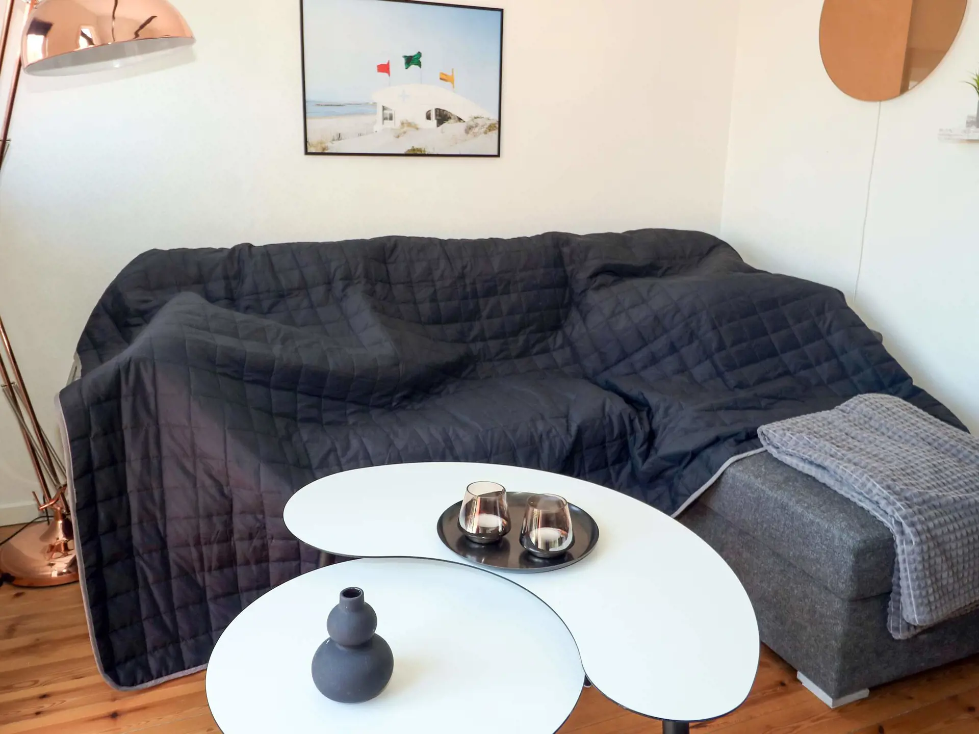 Ferienwohnung mit Meerblick, in bester Lage direkt am kinderfreundlichen Strand, in der Nähe des Hafens Øster Hurup und aller Sehenswürdigkeiten.