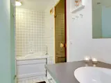 Modernes Ferienhaus mit Whirlpool und Sauna im Bad. Das Reihenhaus liegt am Hafen von Øster Hurup, mit Ausblick vom Wohnzimmer sowie der oberen Etage des Hauses zur Ostsee und der Küstenlandschaft am Strandufer von Øster Hurup.