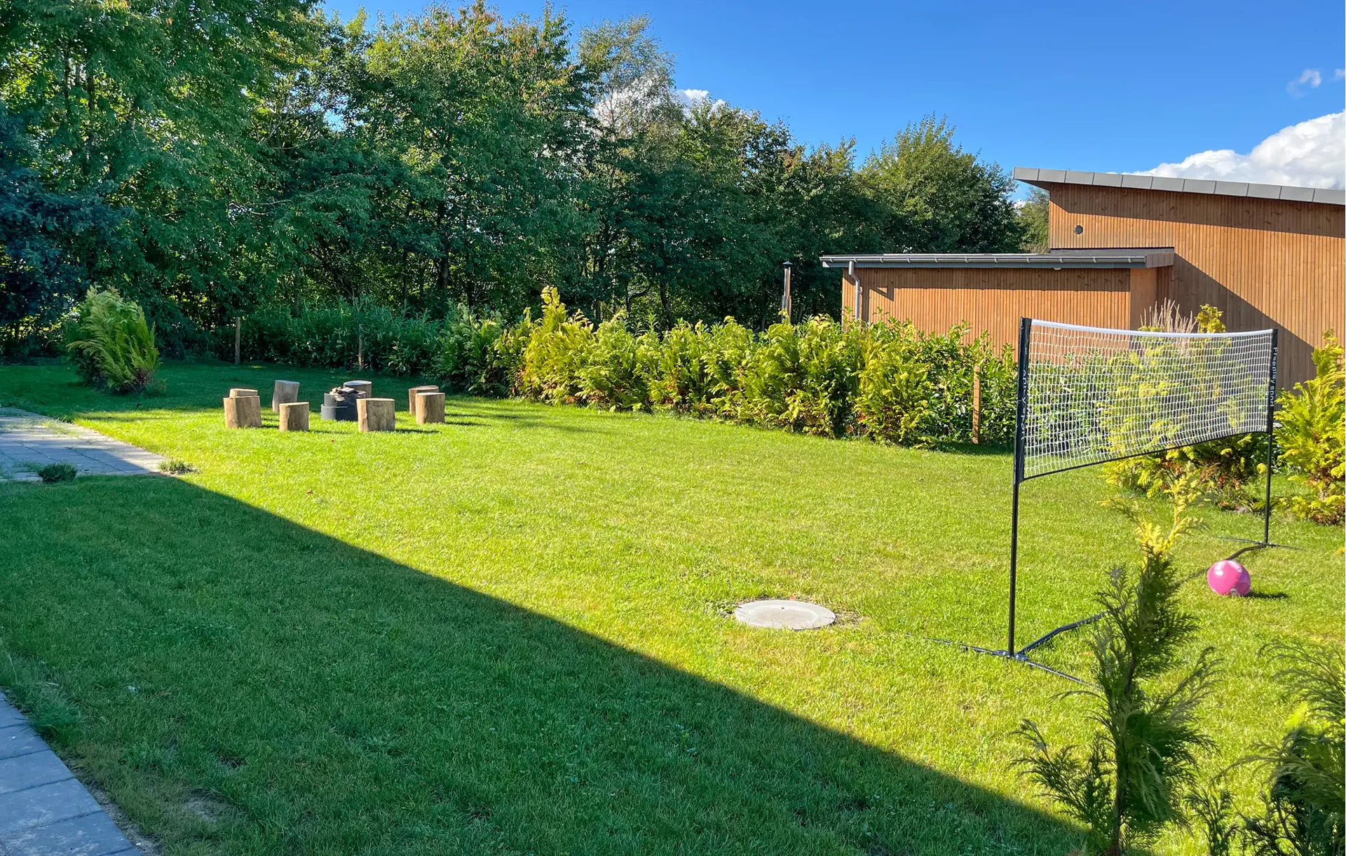 Starten Sie Ihren Tag mit einem Kaffee auf der Terrasse und genießen Sie die Stille des Gartens, während die Sonne langsam höher steigt. Später können Sie im warmen Whirlpool entspannen oder in der kleinen Fasssauna neue Energie tanken. Die Kinder freuen sich über das Trampolin, den Sandkasten und viel Platz zum Spielen im Grünen. Wenn der Abend kommt, wird am Grill oder an der Feuerstelle gegessen und gelacht, während der Tag in entspannter Stimmung ausklingt.