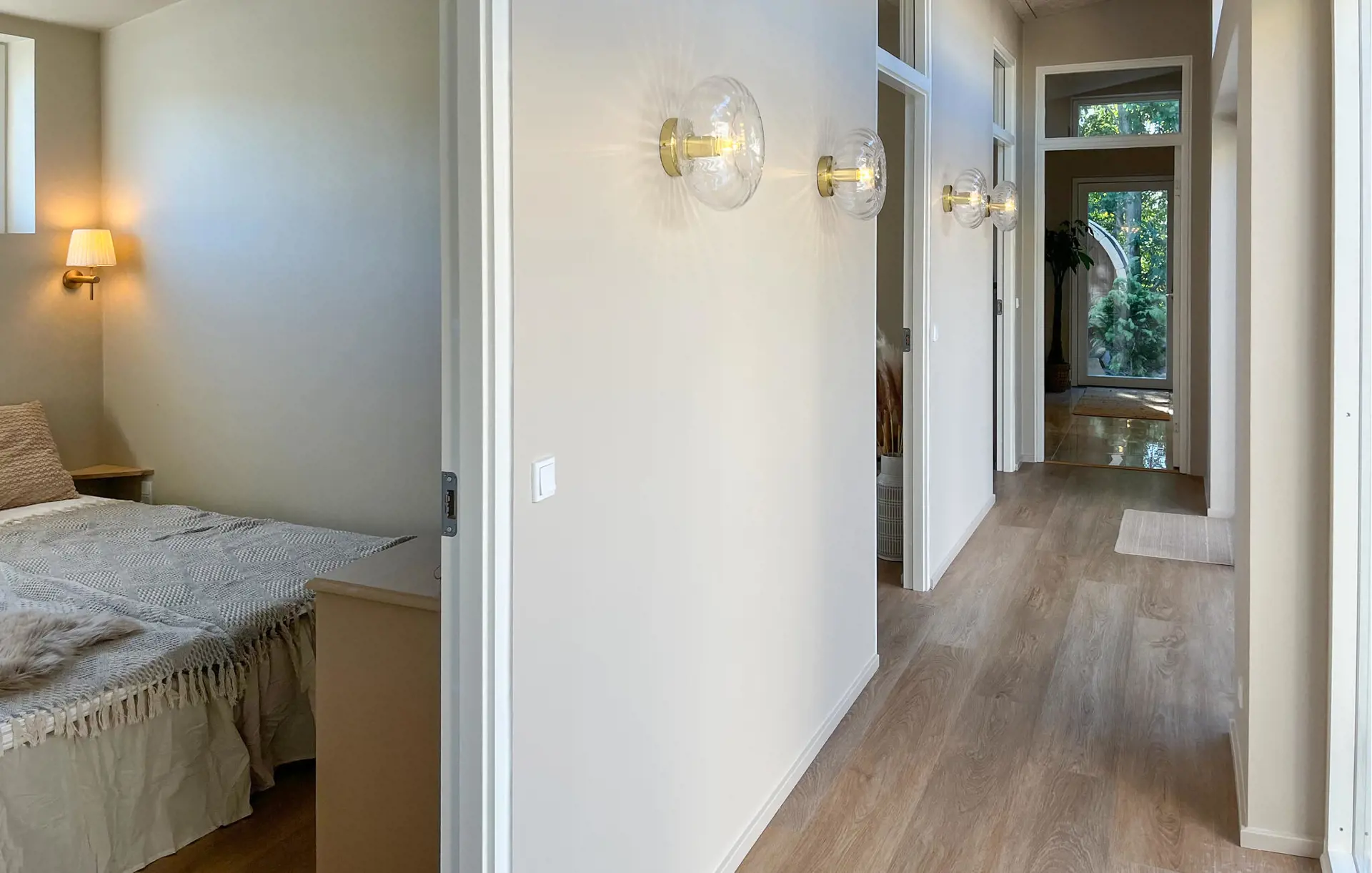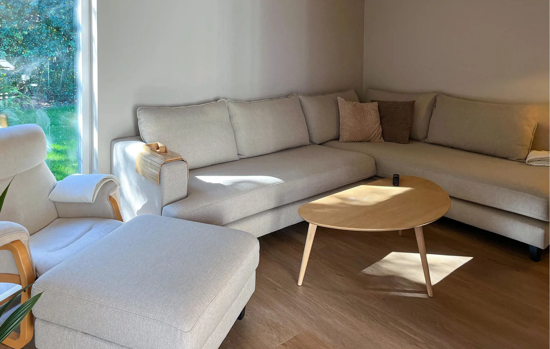 Dieses schöne Haus empfängt Sie mit einem modernen Ambiente, mit warmen Holztönen und stilvollen Details. In der offenen Küche mit großem Esstisch bereiten Sie gemeinsam köstliche Mahlzeiten zu und genießen diese mit Blick in den Garten. Auf der weichen Sofalandschaft lässt es sich wunderbar entspannen, während im Kamin ein Feuer leise knistert. Verbringen Sie hier gesellige Stunden beim Kaffeetrinken, beim gemeinsamem Fernsehen oder einem Spieleabend.