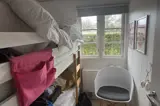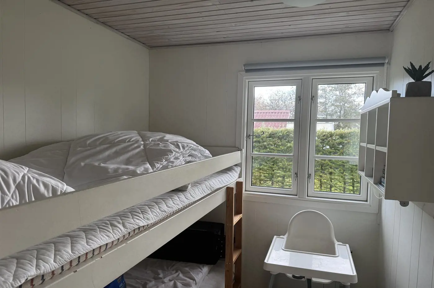 Die Schlafplätze verteilen sich auf 4 Schlafräume. 4 Schlafplätze in Doppelbetten. 4 Schlafplätze in Etagenbetten. Ferner steht ein Kinderbett zur Verfügung.