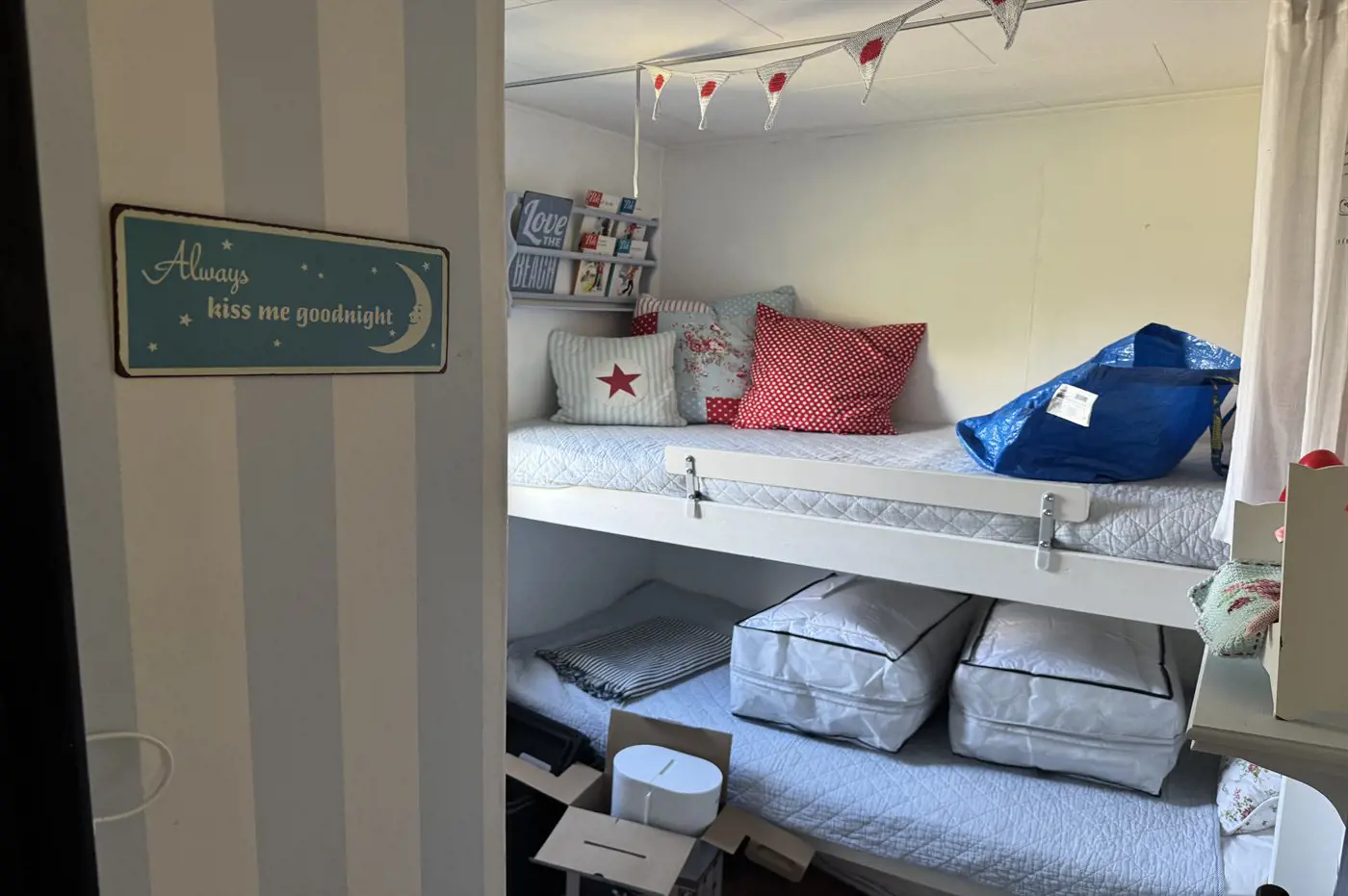 Die Schlafplätze verteilen sich auf 3 Schlafräume. 4 Schlafplätze in Doppelbetten. 2 Schlafplätze in einem Etagenbett.