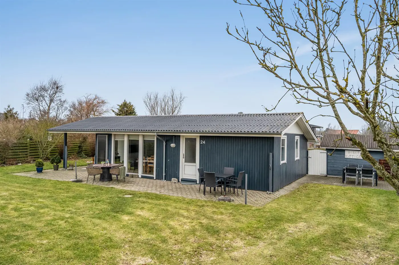 Die Ferienunterkunft liegt auf einem 663 m² großen Gartengrundstück. Die Entfernung zum Meer beträgt 250 m. Die Entfernung zum Fjord beträgt 11450 m. Die nächste Einkaufsmöglichkeit liegt 420 m entfernt. In einem Abstand von 16450 m gibt es einen Golfplatz. Es steht ein offenes Terrassenareal zur Verfügung. Außerdem gibt es überdachte Terrasse. Es steht ein Grill zur Verfügung. Parkplatz auf dem Grundstück.