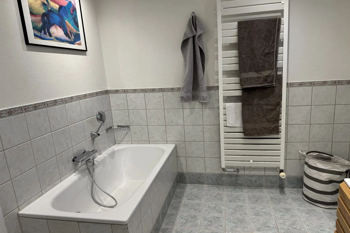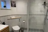 Es gibt 1 Badezimmer mit Duschnische und 2 Toiletten, davon 1 Gästetoilette. Fußbodenheizung in 1 Badezimmer. Fußbodenheizung in der Gästetoilette.