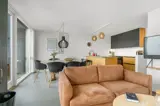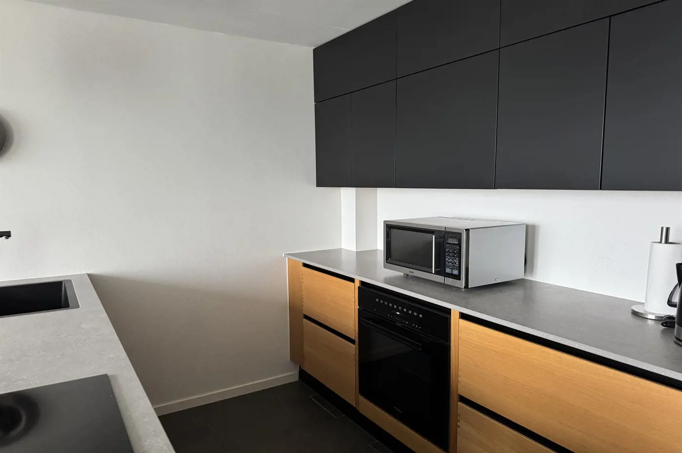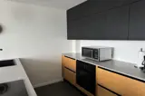 Die Küche ist mit Kühlschrank ausgestattet. Außerdem gibt es 4 Keramik-Kochfelder, Umluftofen, Mikrowelle, Airfryer sowie Geschirrspüler.