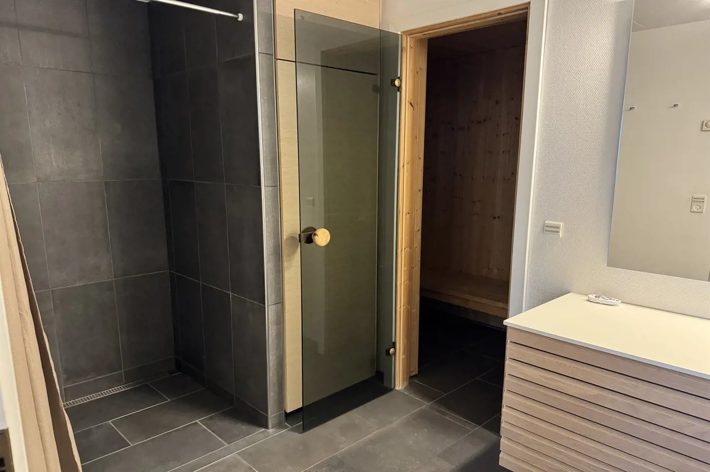Es gibt 2 Badezimmer mit Duschnische und 2 Toiletten. Fußbodenheizung in 1 Badezimmer. Es steht eine Sauna zur Verfügung in der Sie sich so richtig entspannen können.