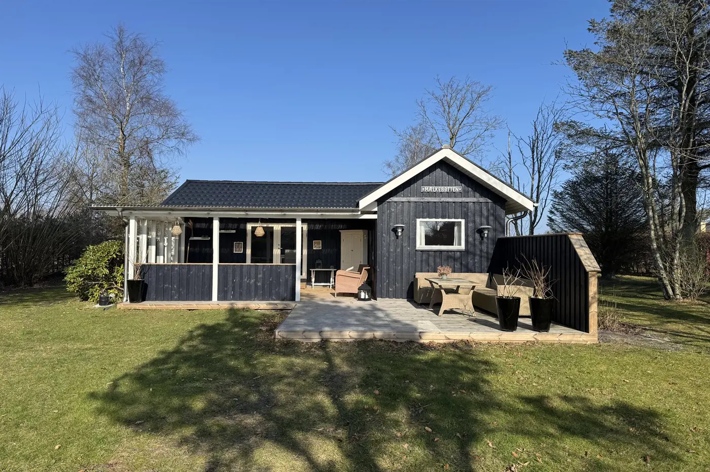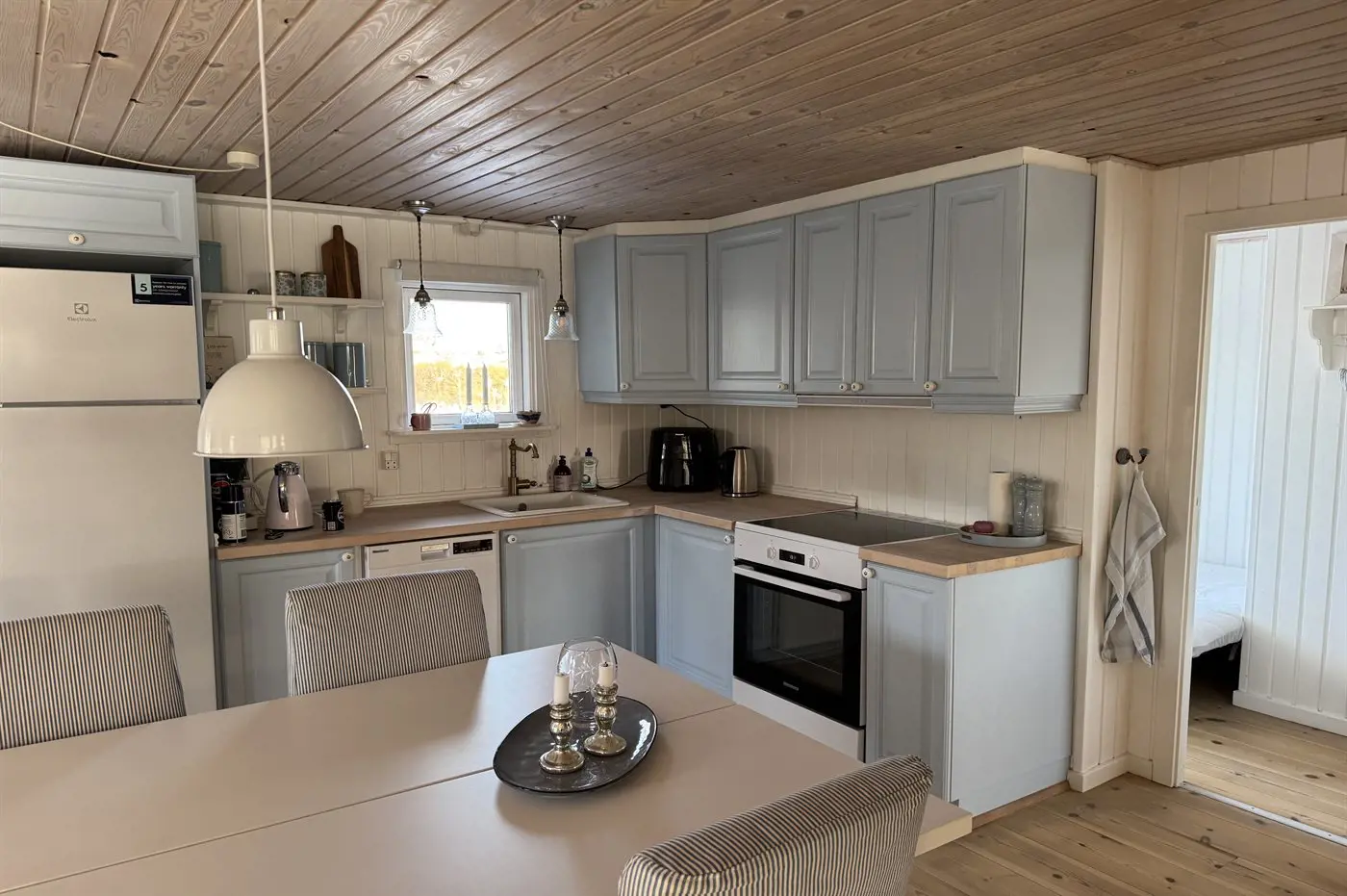 Gemütliches Ferienhaus mit einer schönen überdachten Terrasse, auf der ihr lange, entspannte Tage und warme Sommerabende genießen könnt. Im Garten findet ihr eine Feuerstelle, die zu Stockbrot, guten Gesprächen und echter Ferienhausstimmung unter freiem Himmel einlädt.