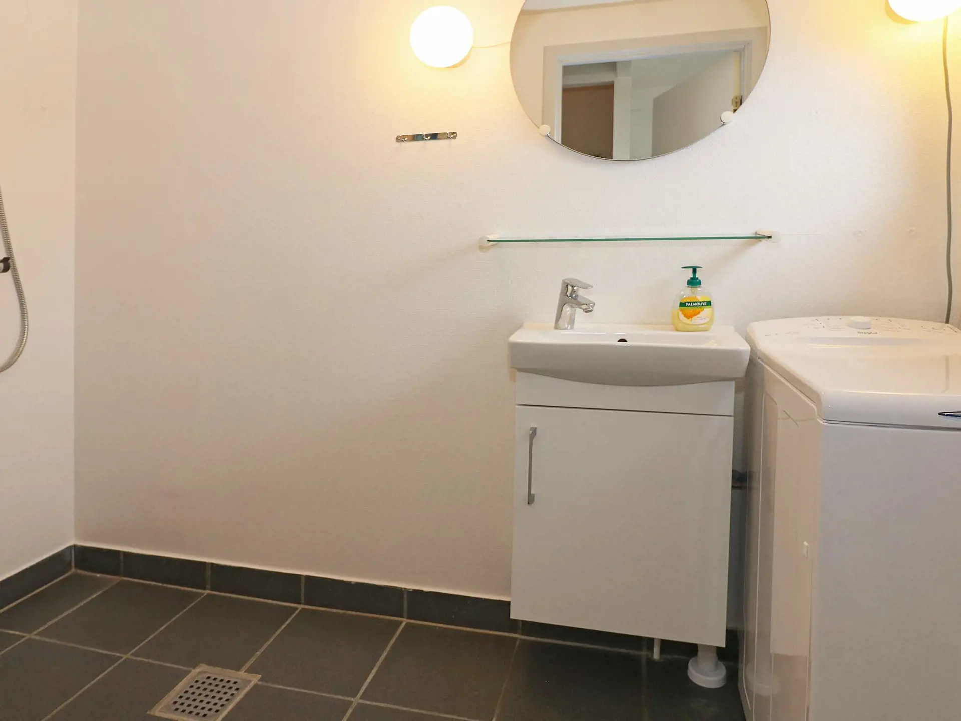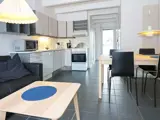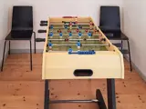Die Wohnung ist im Erdgeschoss mit Bad, Küche, Ess- und Wohnzimmer mit Zugang zu einer Terrasse eingerichtet. Oben im 1. Stock gibt es einen schönen Balkon mit Meerblick, ein Schlafzimmer mit Doppelbett und ein zweites Zimmer mit 2 Etagenbetten und vier Schlafplätzen. Für den Freizeitspaß steht ein Tischkicker bereit. In der Wohnung wurden eine klimafreundliche Wärmepumpe sowie eine Waschmaschine installiert.