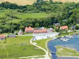Ferienwohnung mit Meerblick und zugleich besonders attraktiver Lage im Ort, direkt neben dem kinderfreundlichen Strandufer sowie unweit des kleinen Hafens und des Ortskerns von Øster Hurup.