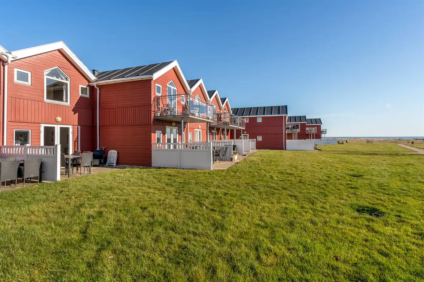 . Die Entfernung zum Meer beträgt 75 m. Die Entfernung zum Fjord beträgt 11100 m. Die nächste Einkaufsmöglichkeit liegt 300 m entfernt. In einem Abstand von 16200 m gibt es einen Golfplatz. Es steht ein offenes Terrassenareal zur Verfügung.