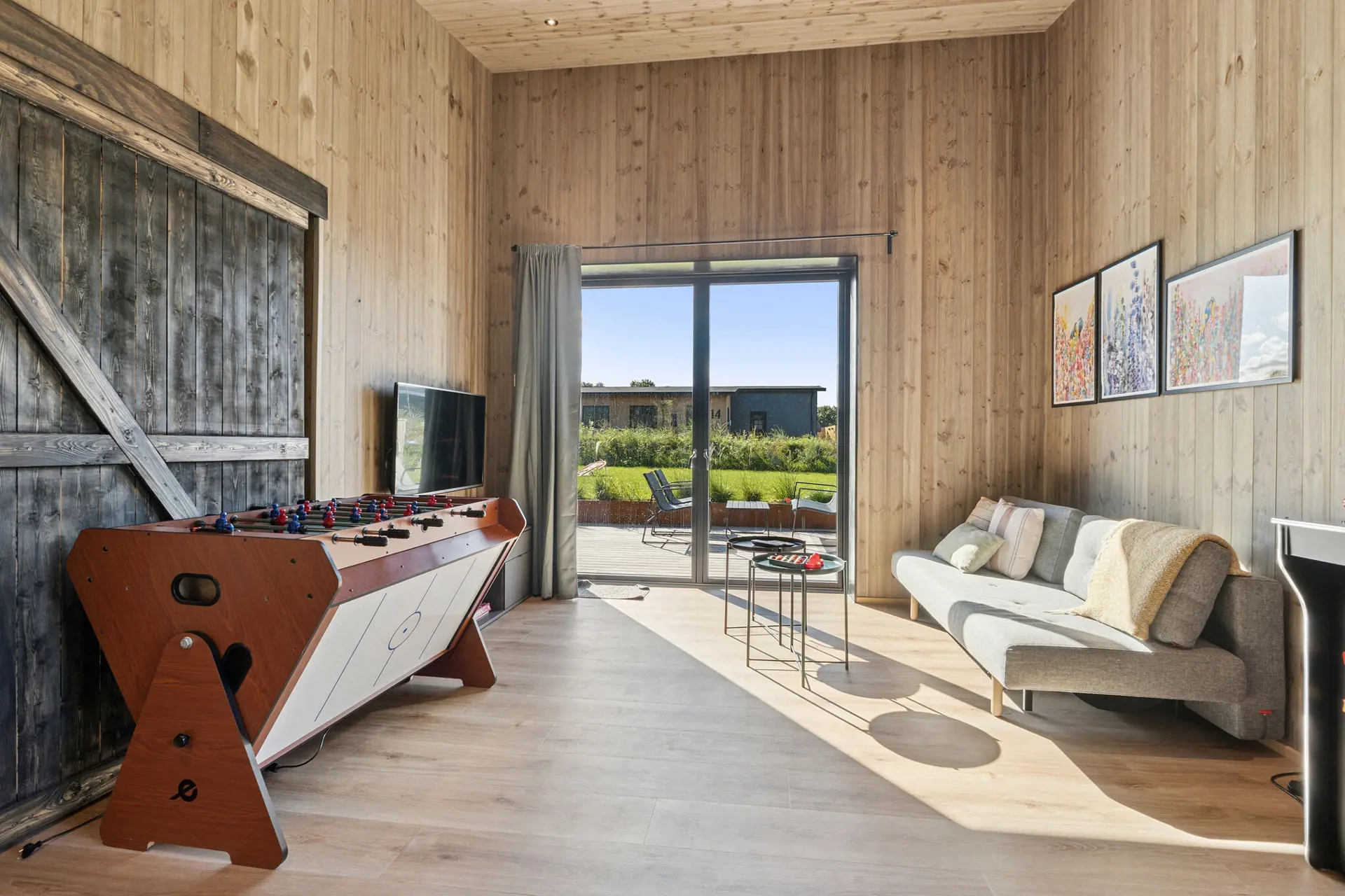 Willkommen in einem modernen Ferienhaus in Øster Hurup, nur wenige Schritte vom Strand, dem charmanten Ortsleben und dem bekannten Vaffelhuset entfernt. Das Haus bietet Platz für 12 Personen in fünf Schlafzimmern, darunter ein gemütliches Annex mit Waldblick. Das helle Wohnzimmer mit Küche ist der Mittelpunkt des Hauses. Ein Aktivitätsraum mit Airhockey und Arkadeautomat sorgt für Spaß, während Terrasse und Garten mit Spielturm und Gasgrill zum Verweilen einladen. Im Wellnessbereich warten Außenwhirlpool und Dusche unter freiem Himmel. Øster Hurup bietet einen kinderfreundlichen Sandstrand, kleine Geschäfte und Ausflüge in die Natur – ideale Voraussetzungen für einen unvergesslichen Urlaub.