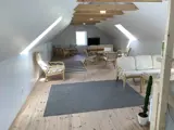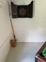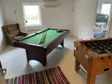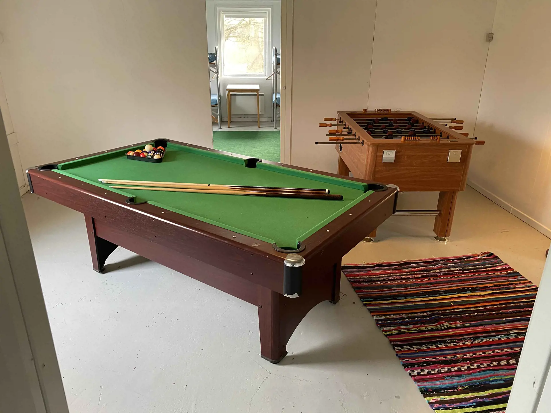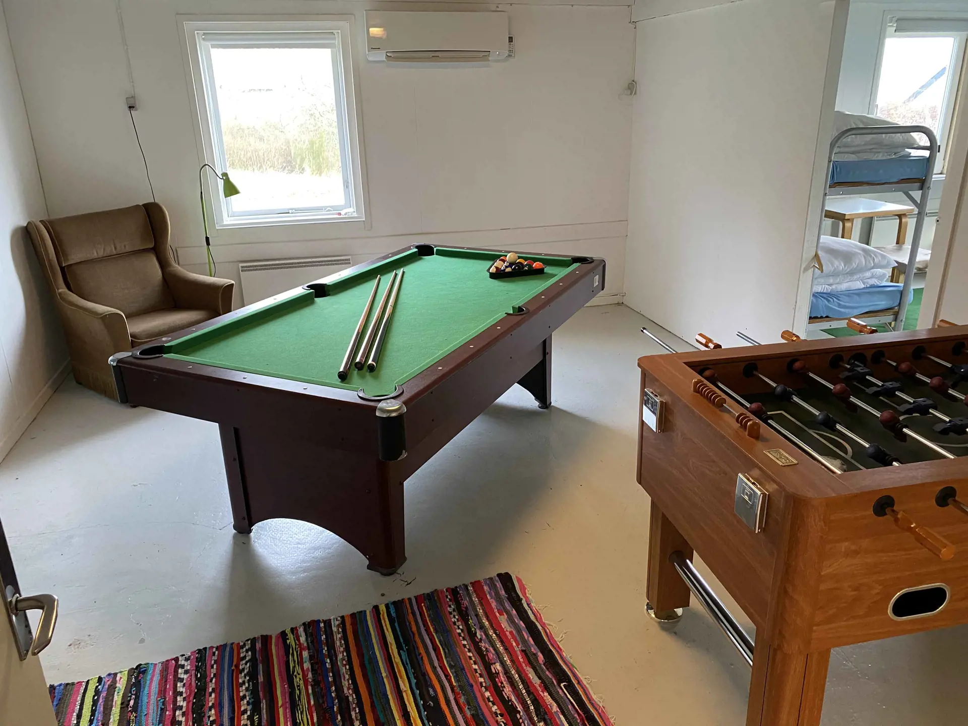 Aktivitätsraum (Zimmer 5) mit Billardtisch, Darts und Tischfußball (zusätzliche Wärmepumpe Nr. 2). Wohnzimmer im Obergeschoss (ca. 80 m²), geeignet als Kurs- oder Unterrichtsraum. Tischtennisplatte, Sitzgruppen, TV und PlayStation (Wärmepumpe Nr. 3).