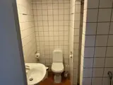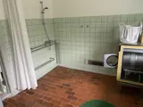 Zwei große Badezimmer mit jeweils 2 WCs, 1 Dusche und 7 Waschbecken – typische Schullandheim-Atmosphäre. Waschmaschine vorhanden. Die Zimmer 1 und 6 sind Durchgangszimmer zu den Badezimmern. Zusätzlich gibt es ein weiteres Bad mit Dusche und WC am Treppenaufgang.