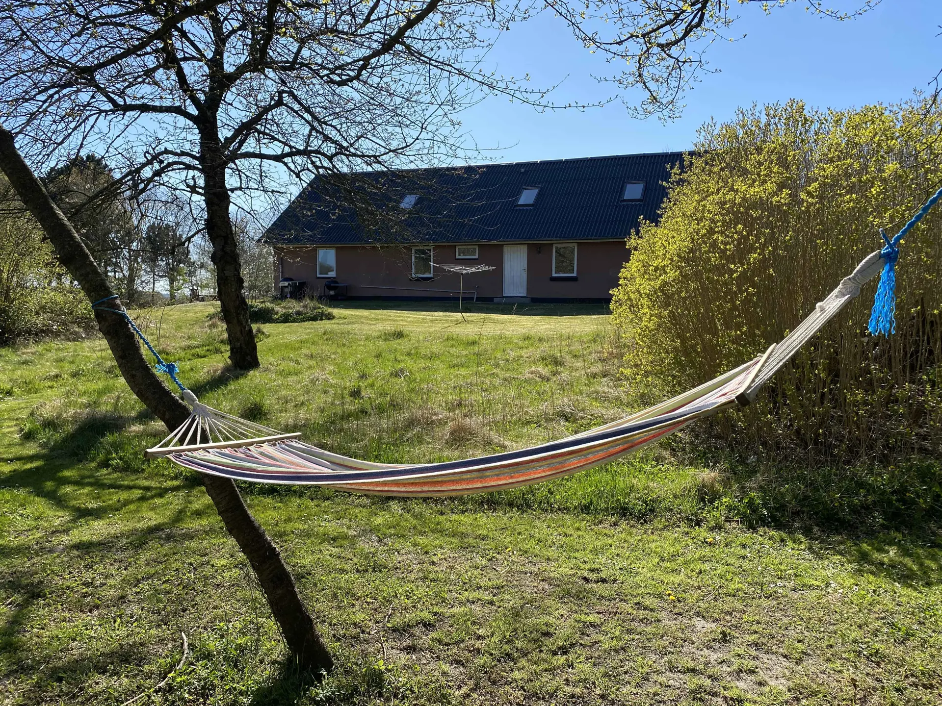 Das Haus liegt auf einem 7.740 m² großen Grundstück mit Feuerstelle und Ballspielplatz. Große Westterrasse (50 m²) mit Gartenmöbeln und Holzkohlegrill sowie Südterrasse (40 m²). Insgesamt 43 Stühle und 3 große Gartentische.