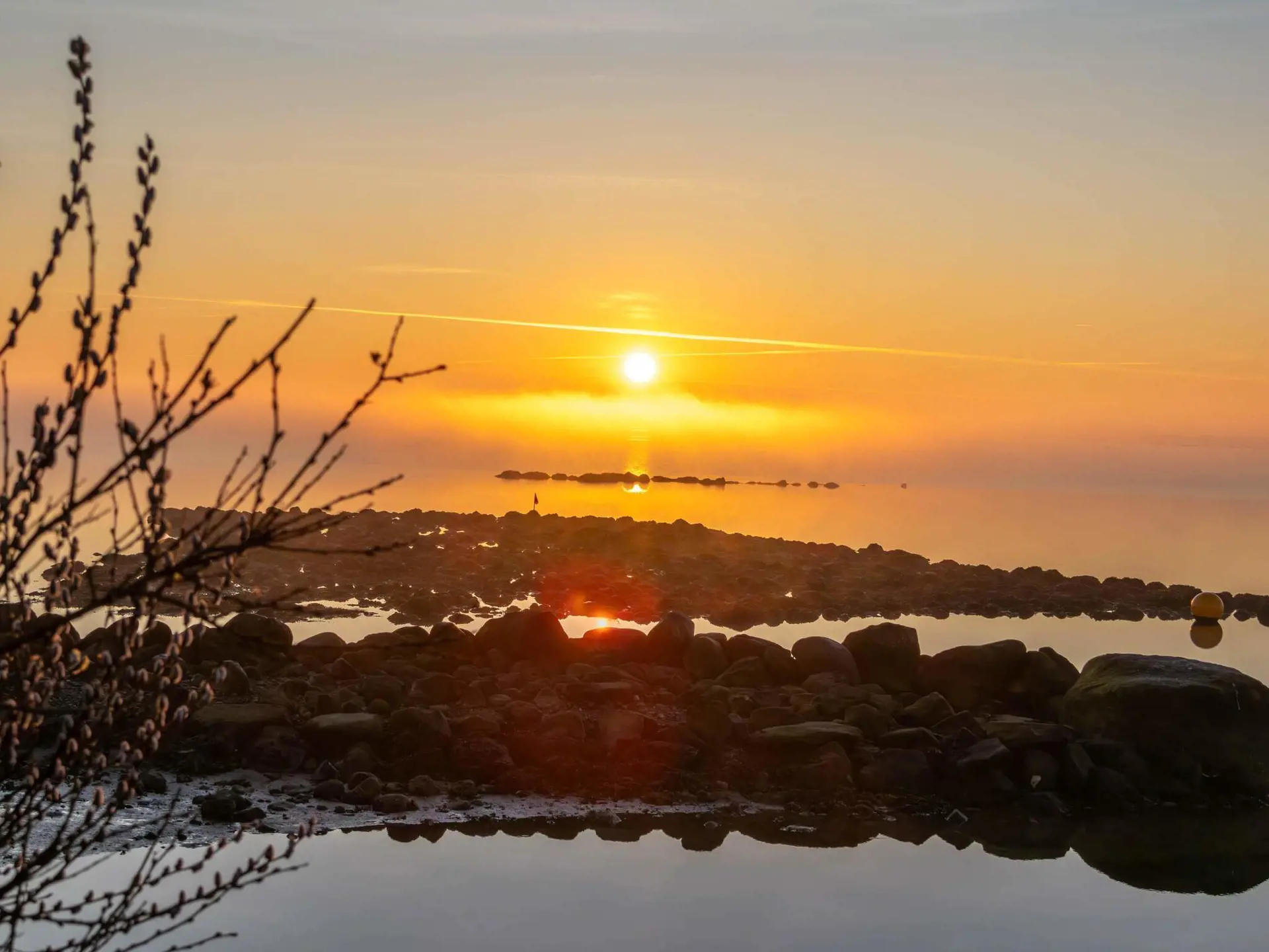 unweit des kleinen Hafens in Udbyhøj. Von dort verkehrt eine kleine Fähre hinüber zum anderfen Fjordufer, wo man ein attraktives Badeufer findet. Angeln ist in der Umgebung gut möglich.