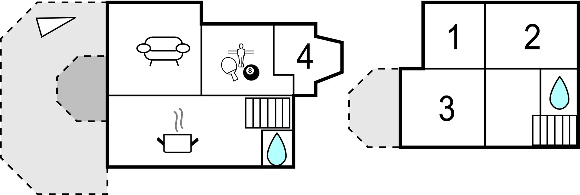 Das Wohnzimmer mit Sofa, Sessel und Kaminofen verbindet moderne Elemente mit rustikalem Charme. Machen Sie es sich vor dem Feuer gemütlich oder nutzen Sie den angrenzenden Raum mit Billardtisch für Spiel und Spaß. Große Fenster geben den Blick auf die offene Landschaft frei. Nehmen Sie im Essbereich Platz und genießen Sie gemeinsame Mahlzeiten.