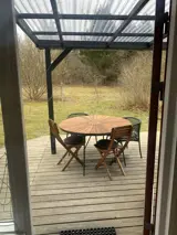 Das Haus wurde 2025 teilweise modernisiert und präsentiert sich nun mit neuem Eichenholzdielenboden, einer renovierten Tischlerküche aus den 1960er-Jahren sowie funktionalen und stilvollen Möbeln in einem Mix aus Neu und Alt. Es gibt zwei kleine Schlafzimmer: eines mit einem großen Doppelbett (180 cm breit) und das andere mit einem großen Schlafsofa von sehr guter Qualität (150 cm breit). Im Wohnzimmer steht außerdem ein Schlafsofa (120 cm breit), das bei Bedarf ausgeklappt werden kann.