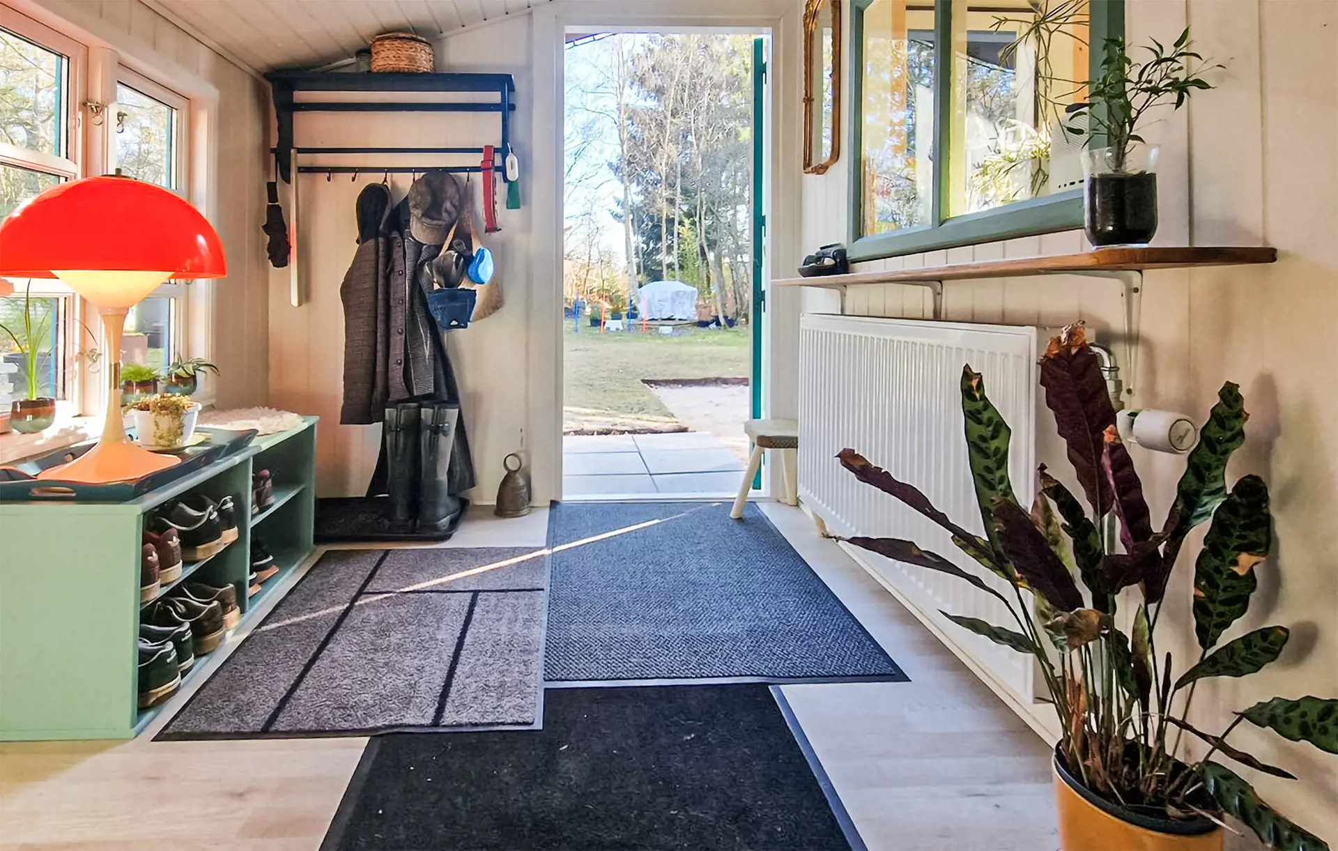 Das Grundstück ist von Bäumen und Sträuchern eingerahmt und bietet Ihnen geschützte Rückzugsorte im Freien. Nehmen Sie sich Zeit für eine Pause an der frischen Luft oder genießen Sie die Stille bei einem Spaziergang direkt vor der Tür.