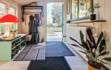 Treten Sie ein und erleben Sie die behagliche Atmosphäre, die durch liebevolle Details geprägt ist. Der kompakte Wohnbereich lädt Sie dazu ein, gemeinsam zur Ruhe zu kommen und den Alltag hinter sich zu lassen. Nehmen Sie in dem bequemen Sessel oder auf dem Sofa Platz und genießen Sie die wohlige Wärme des Kaminofens, während das Licht durch die großen Fenstertüren fällt. Nutzen Sie die offene Küche mit zentraler Kochinsel, um gemeinsam zu kochen und neue Rezepte auszuprobieren. Verweilen Sie am Tresen oder am Tisch und lassen Sie die Zeit bei guten Gesprächen verstreichen.
