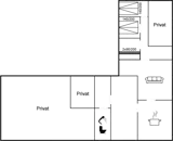 Die Schlafplätze verteilen sich auf 3 Schlafräume. 4 Schlafplätze in Doppelbetten. 2 Schlafplätze in einem Etagenbett.