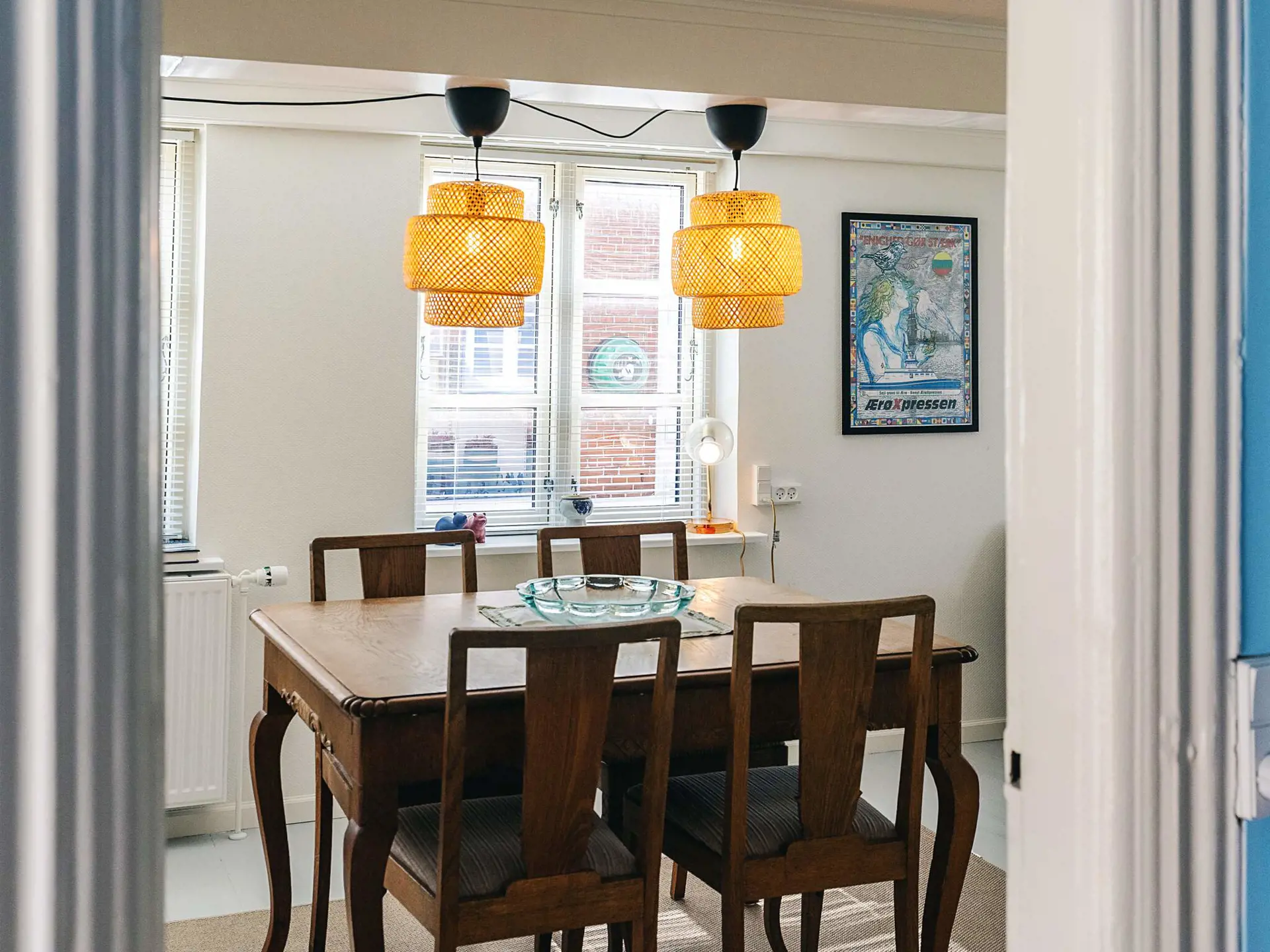 Das Haus ist ein originelles, zweistöckiges Kapitänshaus mit viel nostalgischem Charme und ursprünglichen Details. In zwei großzügigen Schlafzimmern und einem Loft mit hohen Decken gibt es Platz für fünf Übernachtungsgäste. Das große, helle Wohnzimmer lädt zum geselligen Beisammensein am Esstisch oder zum gemütlichen Fernsehen auf dem Sofa ein. Die Küche von 2024 liegt neben dem Wohnzimmer und ist u.a. mit Geschirrspüler, Ceranherd und Kühl-/Gefrierschrank ausgestattet. Von der Küche aus hat man Zugang zur privaten gefliesten Terrasse, auf der man fast den ganzen Tag die Sonne genießen kann – auch perfekt für die langen Sommerabende. Zudem schönes Badezimmer im Haus. Im gesamten Haus gibt es einen schnellen Internetanschluss.