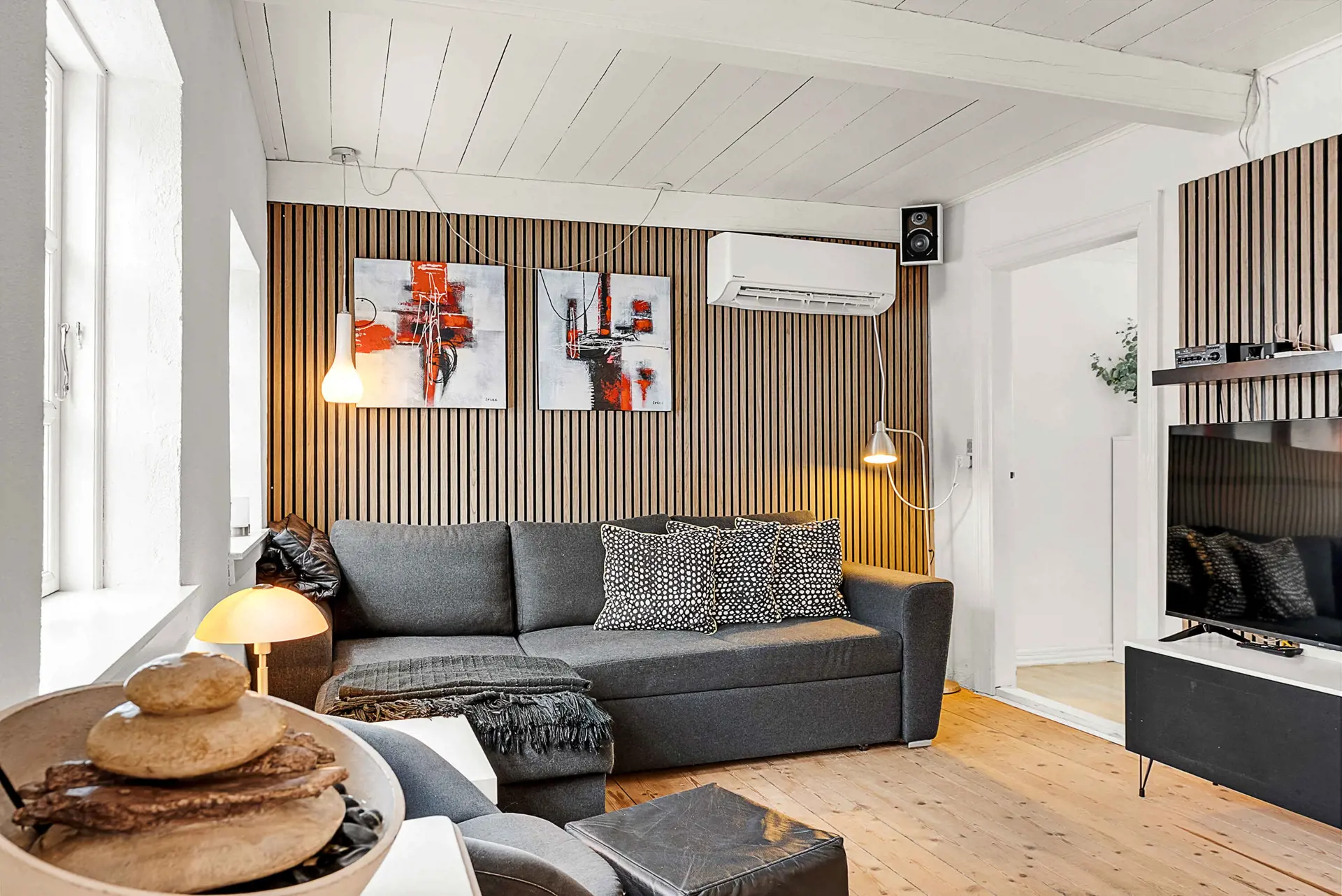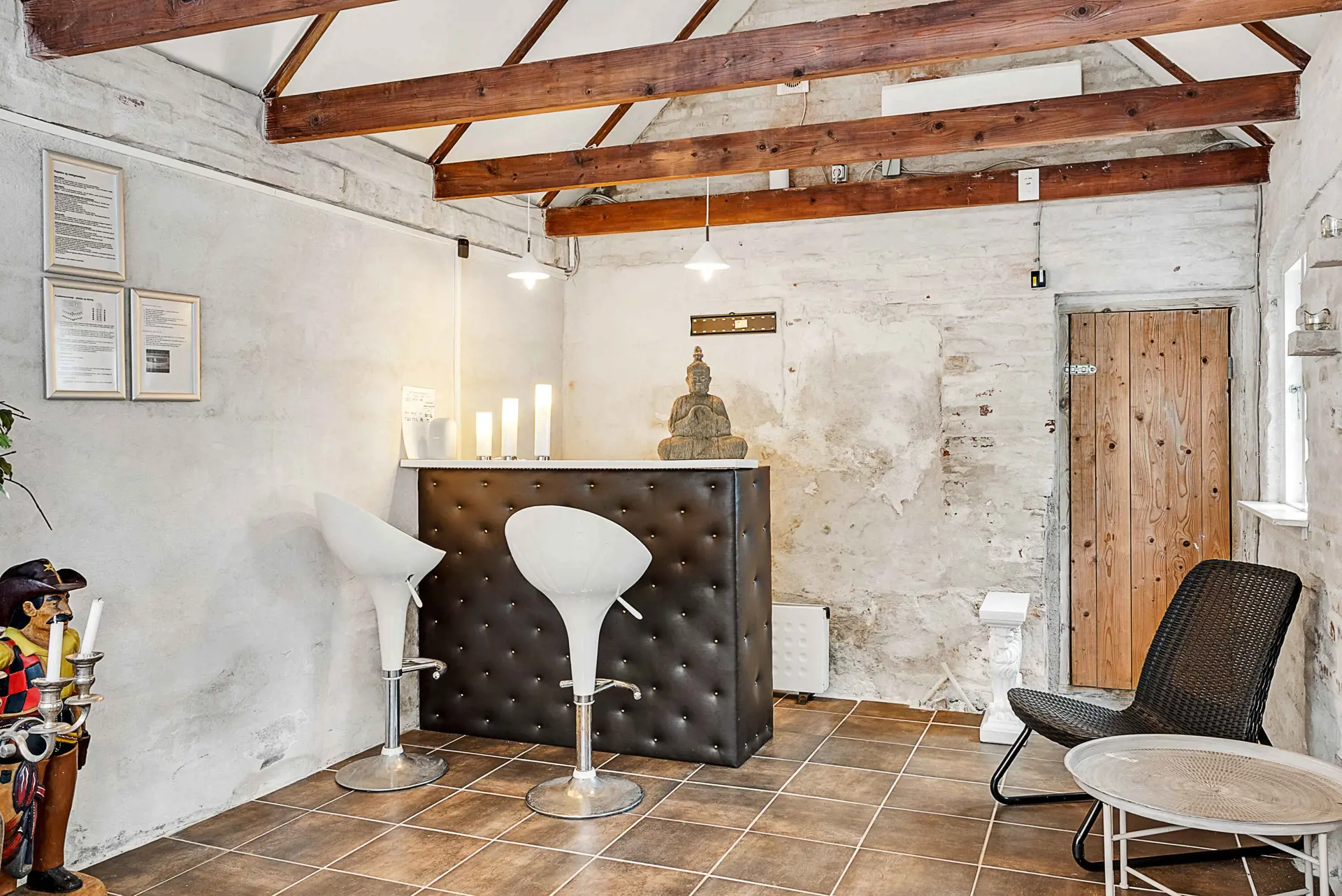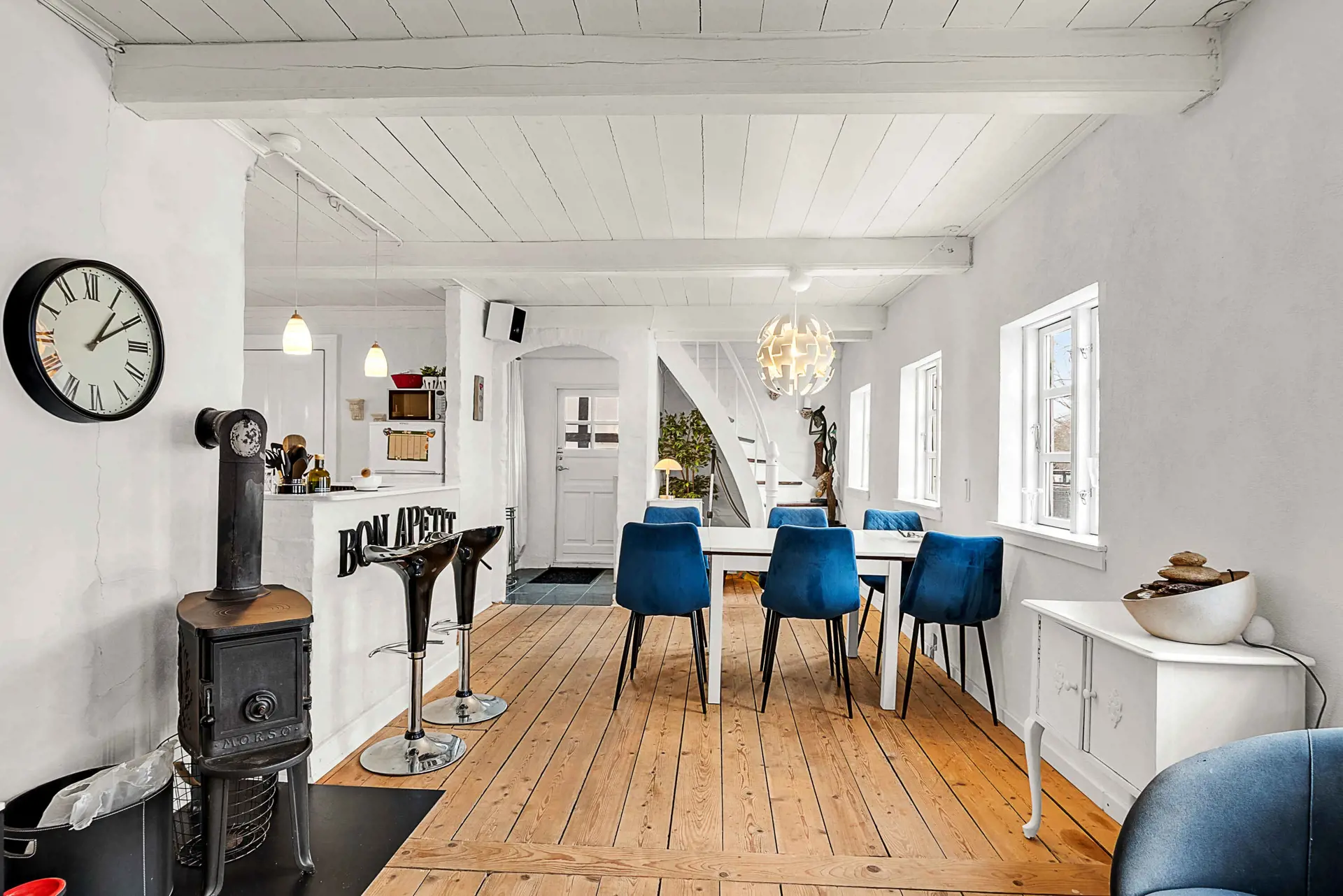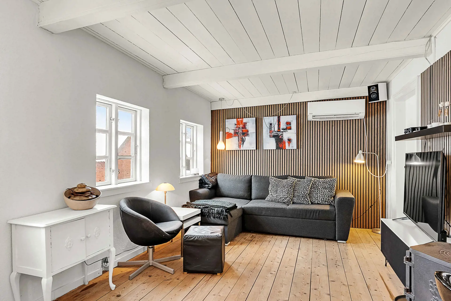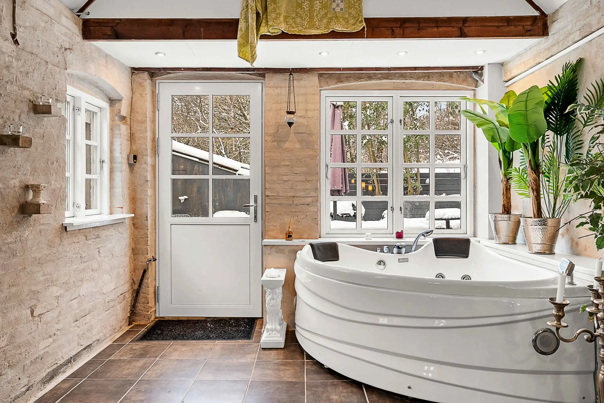 Auf Ærø heißt Sie dieses Ferienhaus in Bregninge zu erholsamen Urlaubstagen mit Wellness und Natur willkommen. Das geschmackvoll modernisierte Haus bietet ein helles Interieur, in dem erhaltene historische Elemente wie sichtbare Deckenbalken und Backsteinwände für rustikalen Charme sorgen. Nach einem Ausflugstag entspannen Sie im gemütlichen Wohnzimmer am Kaminofen oder im Whirlpool.