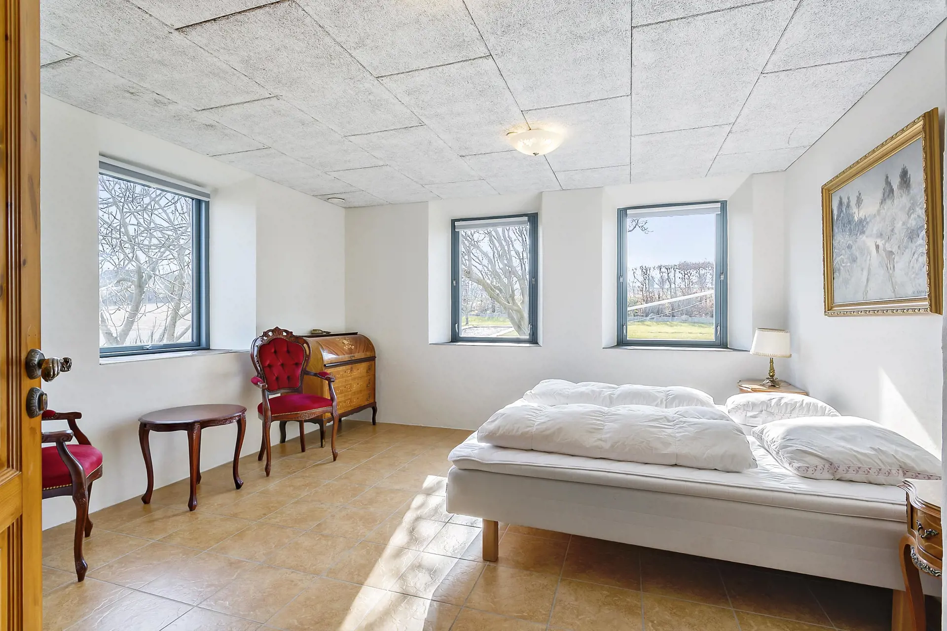 Am Rande Ærøskøbing erwartet Sie dieses attraktive, umfassend renovierte Ferienhaus, das mit einer Wohnfläche von nicht weniger als 340 m² zu bestechen weiß. Die Wohnfläche verteilt sich auf drei Etagen. Das im Jahr 1937 erbaute Steinhaus wurde im Jahr 2015 einer grundlegenden Renovierung unterzogen und präsentiert sich Ihnen daher in heutigen Tagen mit zahlreichen richtig schönen Details. Der Hauseigentümer hat die komplette Renovierung selber durchgeführt. Sein Augenmerk lag dabei darauf, Ihnen drei ausgesprochen geschmackvoll gestaltete Stockwerke zu bieten. Das Haus besticht zudem mit insgesamt sechs Schlafräumen – alle mit einem eigenen ansprechenden Badezimmer. Drei der vorhandenen Schlafzimmer verfügen zusätzlich über je einen schönen Schlafboden, auf dem wiederum jeweils zwei Matratzen zur Verfügung stehen. Im Erdgeschoss und im ersten Stockwerk treffen Sie auf zwei große Küchen, die offen mit dem jeweiligen Esszimmer und Wohnraum verbunden sind. Das Erdgeschoss beherbergt zudem ein Gäste-WC. Von nahezu allen Räumlichkeiten genießen Sie einen schier fantastischen Blick über das Meer. Im Keller werden Sie mit einem richtig schönen Badezimmer verwöhnt, in dem ein großer Whirlpool und eine doppelte Duschkabine für erholsame und entspannte Stunden voller Wellnessflair sorgen. Unter freiem Himmel erwarten Sie eine große, gepflasterte Terrasse und eine Sauna mit Fenstern in Richtung Meer. Falls Sie nach einem Urlaubsdomizil mit zahlreichen besonderen Details suchen, dann sind Sie hier im Nevre 27 bestens aufgehoben.