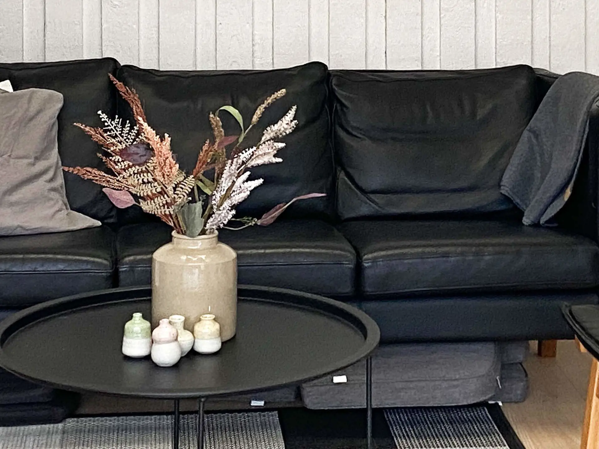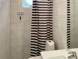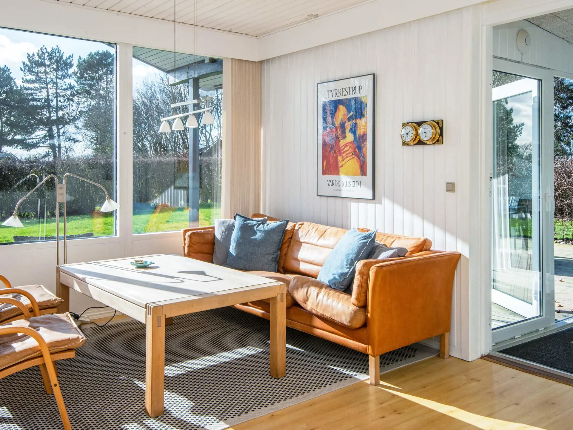 Außerdem drei Schlafzimmer und zwei Badezimmer mit Dusche im Haus. In Verbindung mit dem Eingang gibt es eine schöne gemütliche Sitzecke, wo Sie ein gutes Buch lesen oder eine Tasse Kaffee genießen können. Es steht eine große, teilweise überdachte Holzterrasse mit Gartenmöbeln und Grill zur Verfügung. Im Garten ist viel Platz für Ballspiele etc. Es sind nur ca. 300 m zum Strand, wo Sie baden und angeln können.