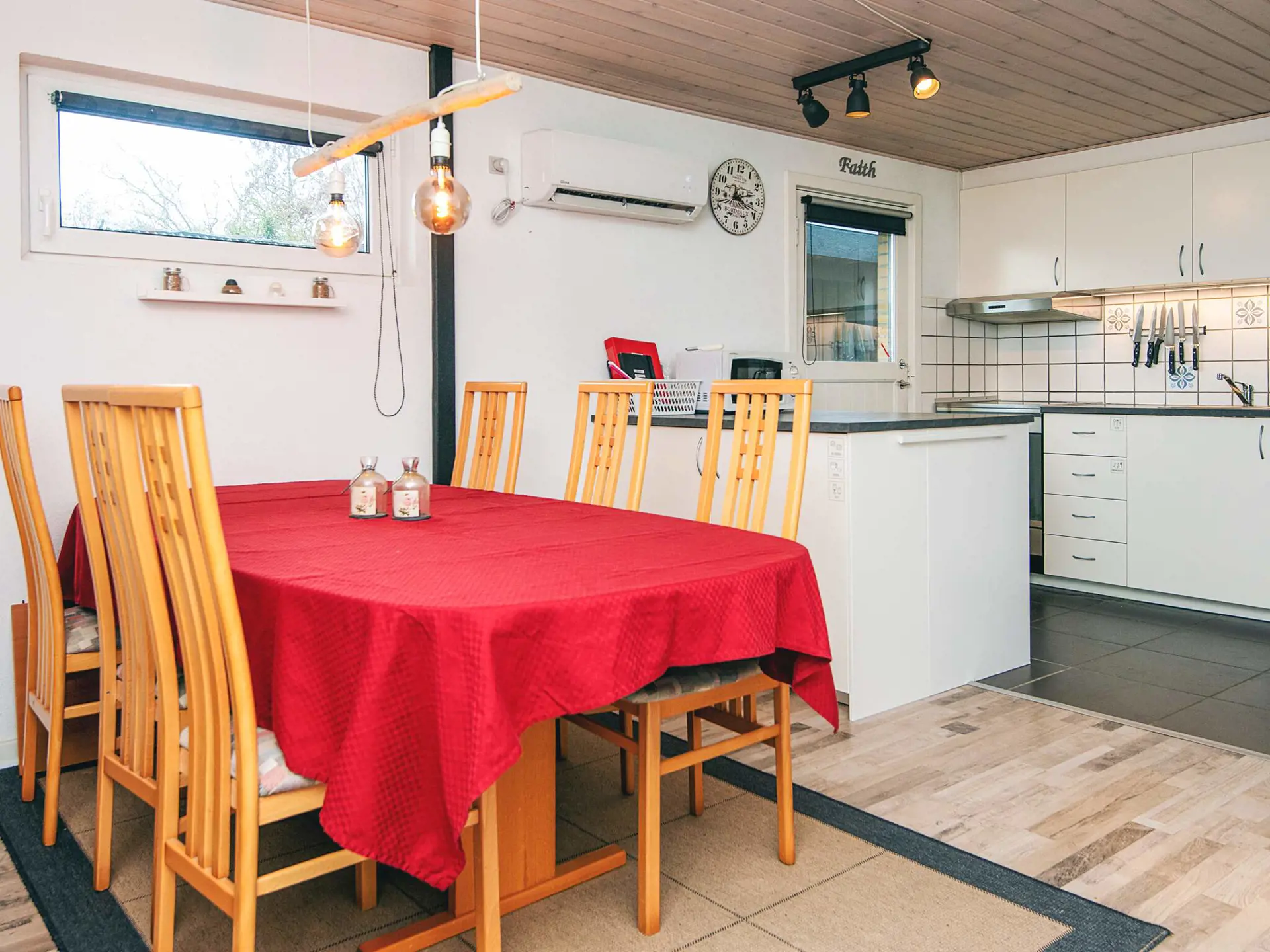 Ferienhaus in Strandnähe in landschaftlich reizvoller Umgebung bei Købingsmark Strand. Das Ferienhaus wurde 2018 renoviert und ist hell und einladend mit einer gut ausgestatteten Küche in offener Verbindung mit dem Wohnzimmer, wo es einen Holzofen und eine Sitzecke mit Fernseher gibt. Es gibt auch eine gemütliche Ecke für die Kleinen mit allem von Brettspielen bis zu Spielzeug und Kinderfilmen.