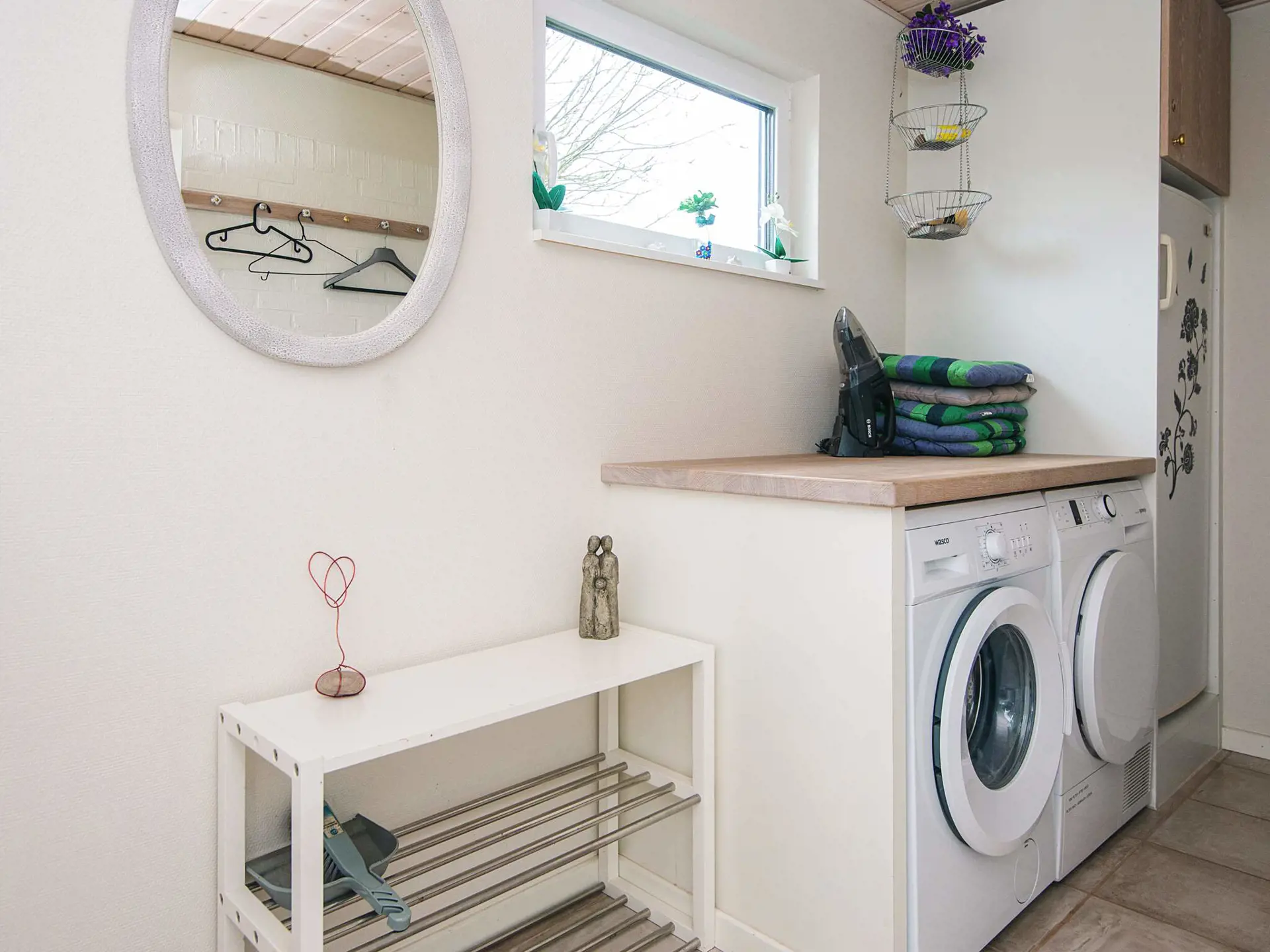 Im isolierten Gartenzimmer/Wintergarten können Sie bei jedem Wetter eine Tasse Kaffee oder ein gutes Buch genießen. Draußen gibt es eine schöne Terrasse und mehrere Sonnenliegen stehen zur Verfügung. Der große Garten bietet viel Platz zum Spielen und für Ballspiele. Hier finden Sie verschiedene Spielgeräte, eine Feuerstelle und ein Shelter vor (ggf. Schlafmatte und Schlafsäcke mitbringen). An der Seite des Ferienhauses befindet sich eine schöne überdachte Sonnenterrasse mit Außenküche, fließend Wasser und Grill. In der Nähe des Hauses befindet sich ein Campingplatz (geöffnet vom 1. Mai bis 1. Oktober), wo Sie frisches Brot zum Frühstück bestellen können.