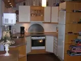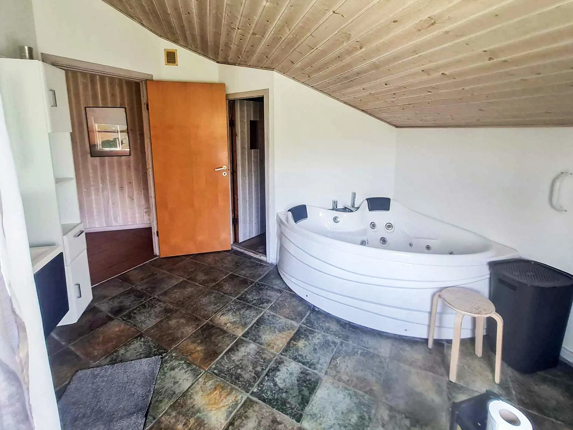Geräumiges Ferienhaus, hell und wohnlich eingerichtet. Warmwasser wird hier mittels umweltfreundlicher Solarenergie erwärmt. Gute technische Küchenausstattung sowie sprudelnder Whirlpool für 2-3 Pers. und gr. Sauna für bis zu 6 Pers. im Haus. Die Zimmertüren vom Bad und 2 SZ sind besonders breit und die Räume somit auch für Rollstuhlfahrer zugänglich. Vom Naturgrundstück, mit u.a. Feuerstelle, Schaukel und Sandkasten, und einer Ecke des Wohnzimmers hat man eine schöne Aussicht zum Kleinen Belt.
