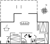 Die Schlafplätze verteilen sich auf 3 Schlafräume. 4 Schlafplätze in Doppelbetten. 2 Schlafplätze in Einzelbetten. Ferner steht ein Kinderbett zur Verfügung.