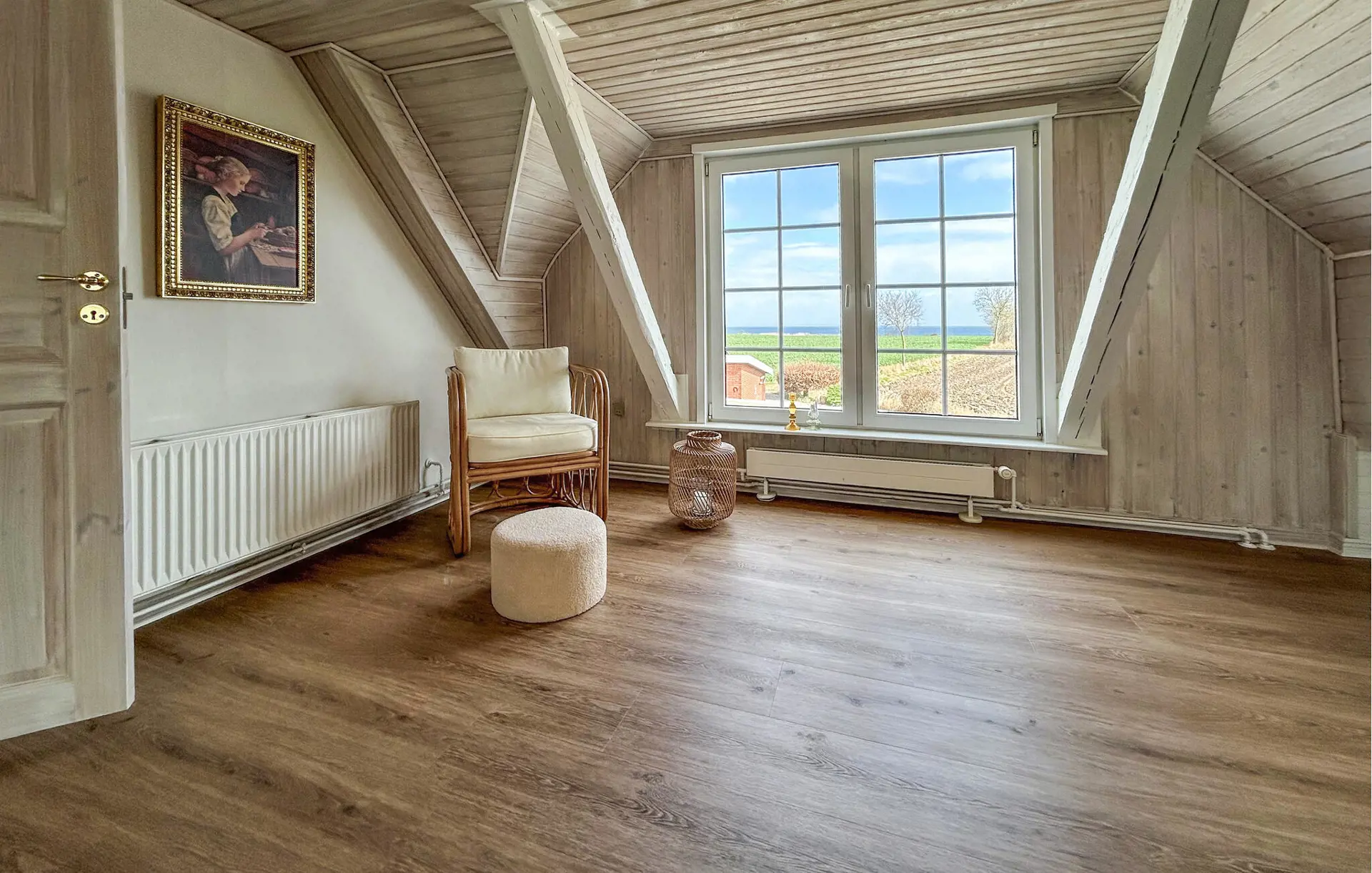 Dieses Haus ist nicht nur idyllisch direkt am Waldrand und am Meer gelegen, sondern besticht auch durch seine freundliche Einrichtung. Helle Farben, eine schöne Holzoptik und ein Kaminofen sorgen für eine heimelige Atmosphäre, in der Sie schnell zur Ruhe kommen. Lehnen Sie sich entspannt mit einem Tee oder Kaffee zurück, hören Sie einen interessanten Podcast oder verbringen Sie einen gemeinsamen Fernsehabend.