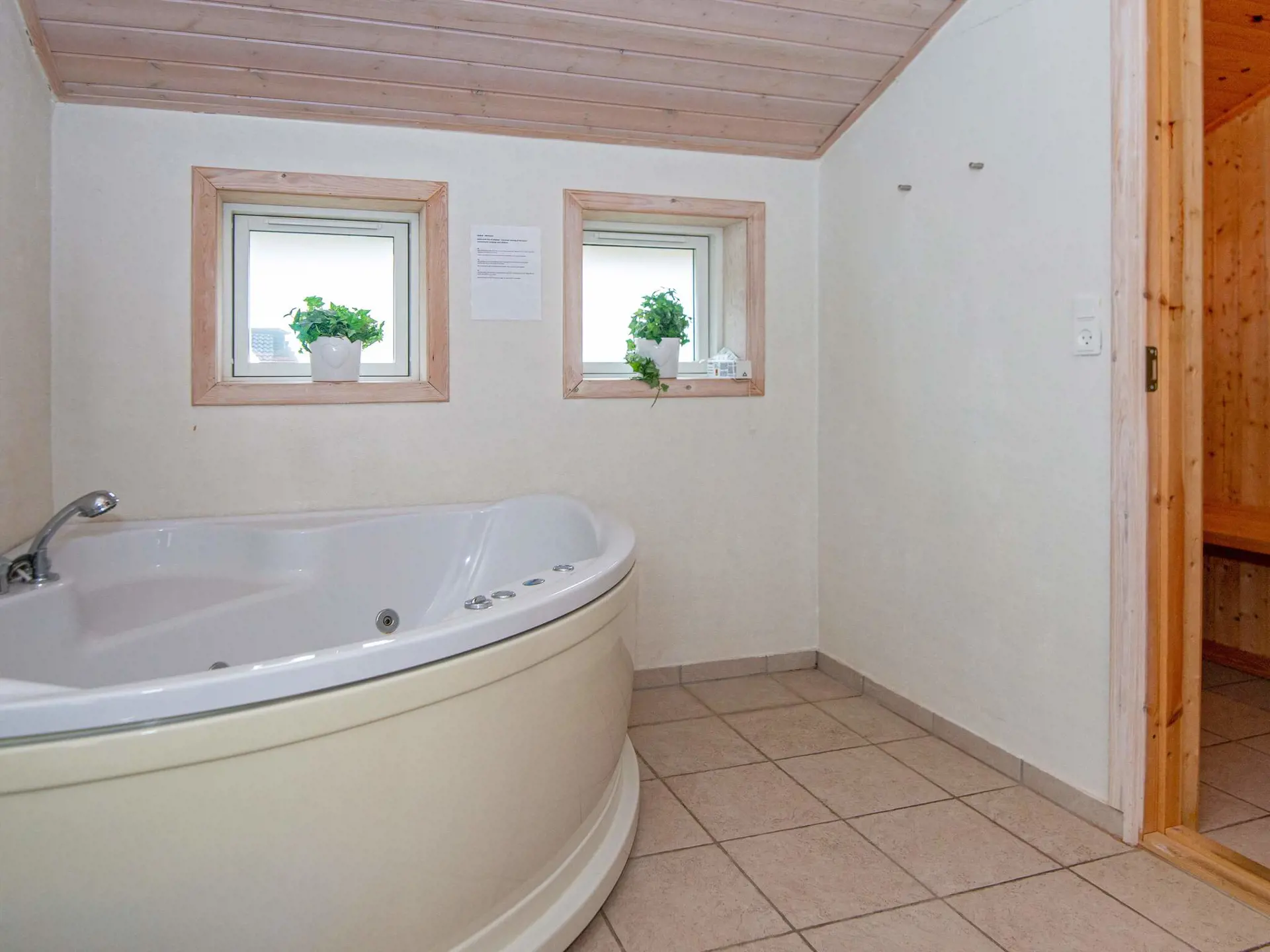 Modernes Ferienhaus mit Whirlpool und Sauna im Badezimmer. Liegt im beliebten Ferienhausgebiet von Mommark, nahe Natur und Küste und zudem unweit der deutsch-dänischen Grenze.