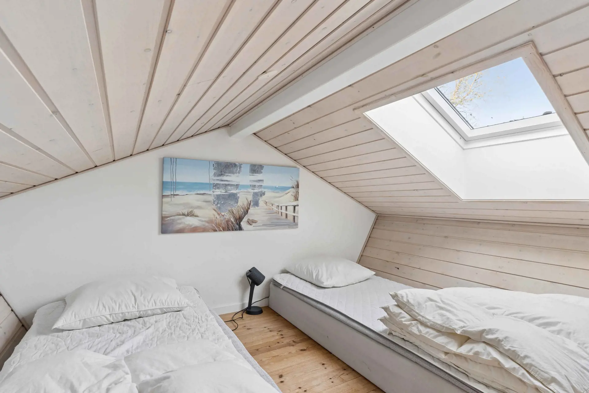 Es gibt insgesamt 4 Schlafzimmer. Die Schlafplätze verteilen sich auf 8 Schlafplätze in Doppelbetten und 2 Schlafplätze auf Matratzen, davon 2 auf dem Hausboden (Hems). Zusätzlich steht 1 Kinderbett zur Verfügung.