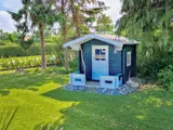 Zur kinderfreundlichen Ausstattung gehören Hochstuhl, Kinderbett und im Außenbereich ein gemütliches Spielehäuschen, Schaukeln und ein Sandkasten.